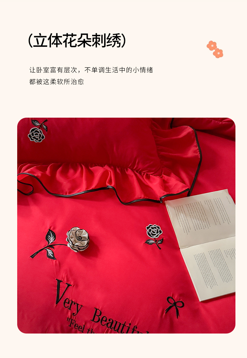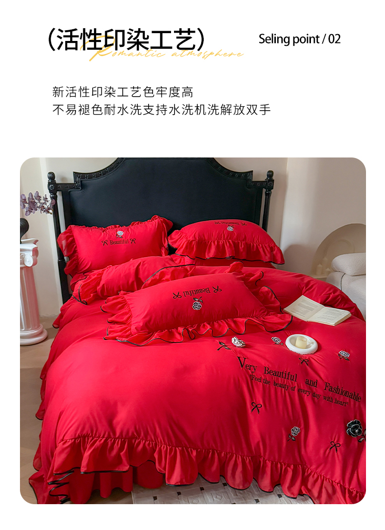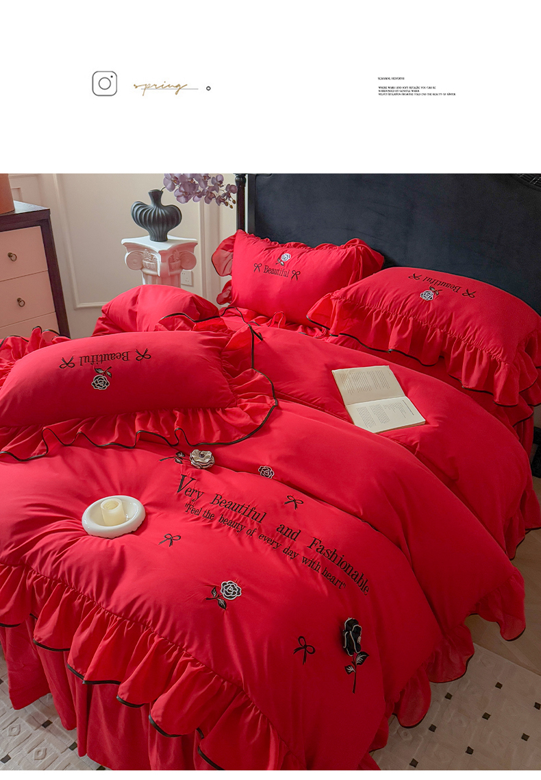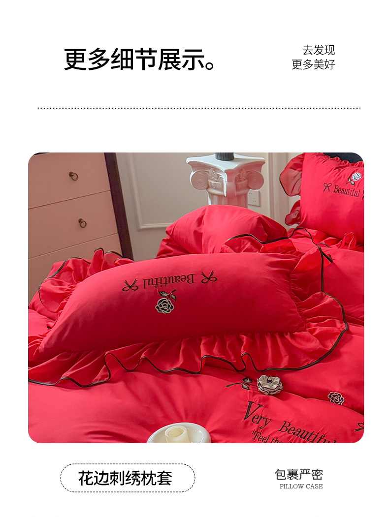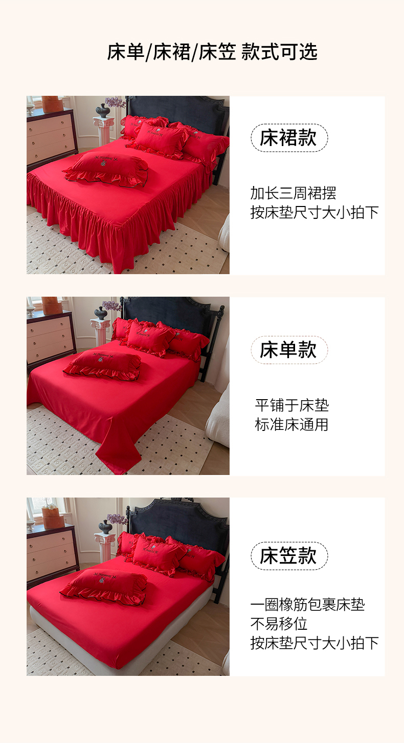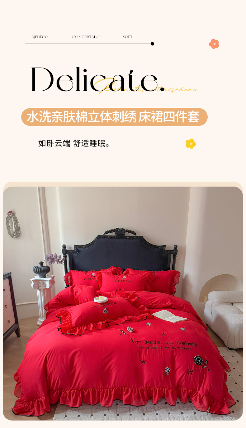 当前位置: 91家纺网 > 商品网购 > 床品套件 > 四件套 > 水洗棉四件套 > 富盛家纺 2025新款水洗亲肤棉刺绣床裙款四件套公主风四件套 茹意—大红