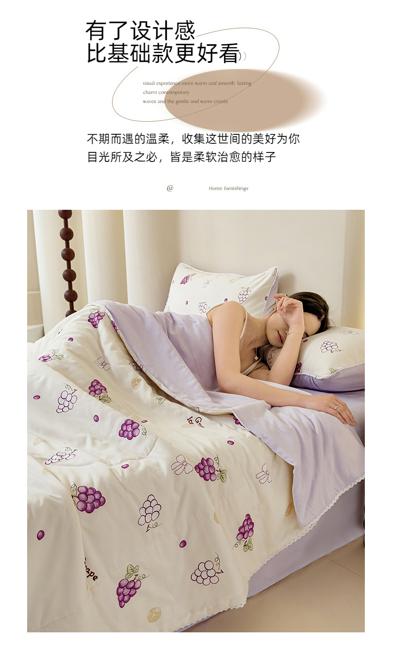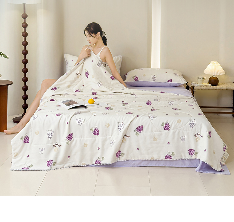 • 91家纺网 家纺一手货源 找家纺 仁凯家纺 2025新款针织棉双层纱棉花夏凉被【百分百新疆棉花填充包检测(提供买家秀)】 紫色葡萄
