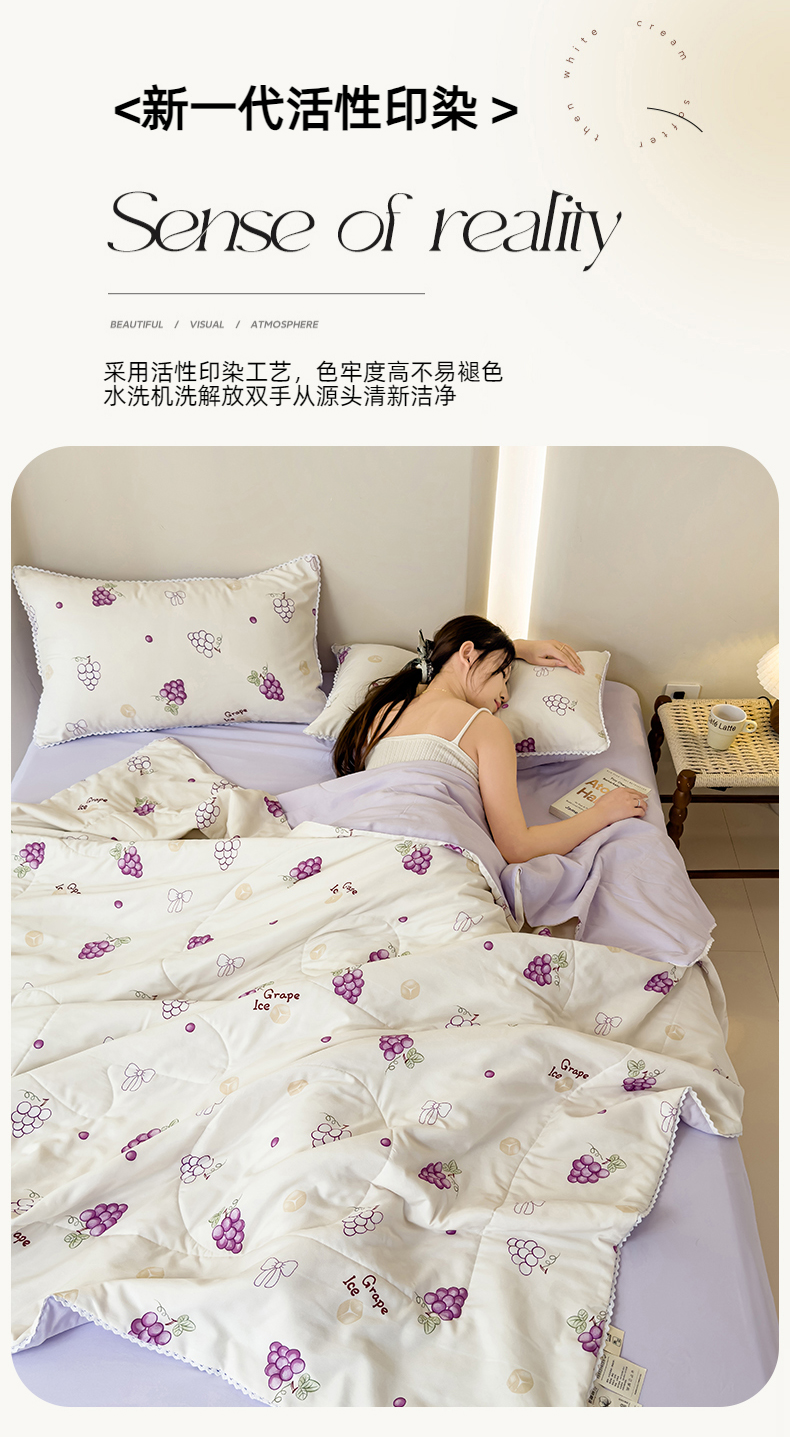 当前位置: 91家纺网 > 商品网购 > 被子 > 夏被 > 仁凯家纺 2025新款针织棉双层纱棉花夏凉被【百分百新疆棉花填充包检测(提供买家秀)】 紫色葡萄