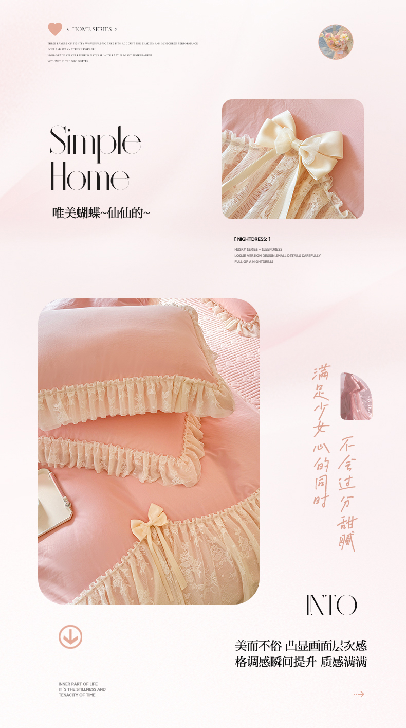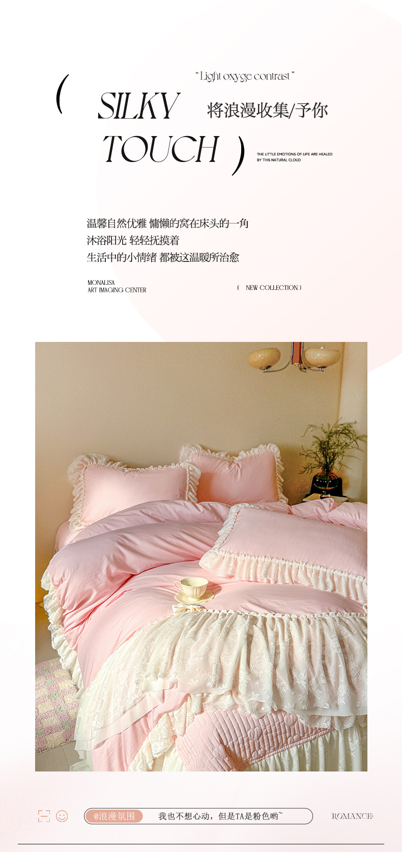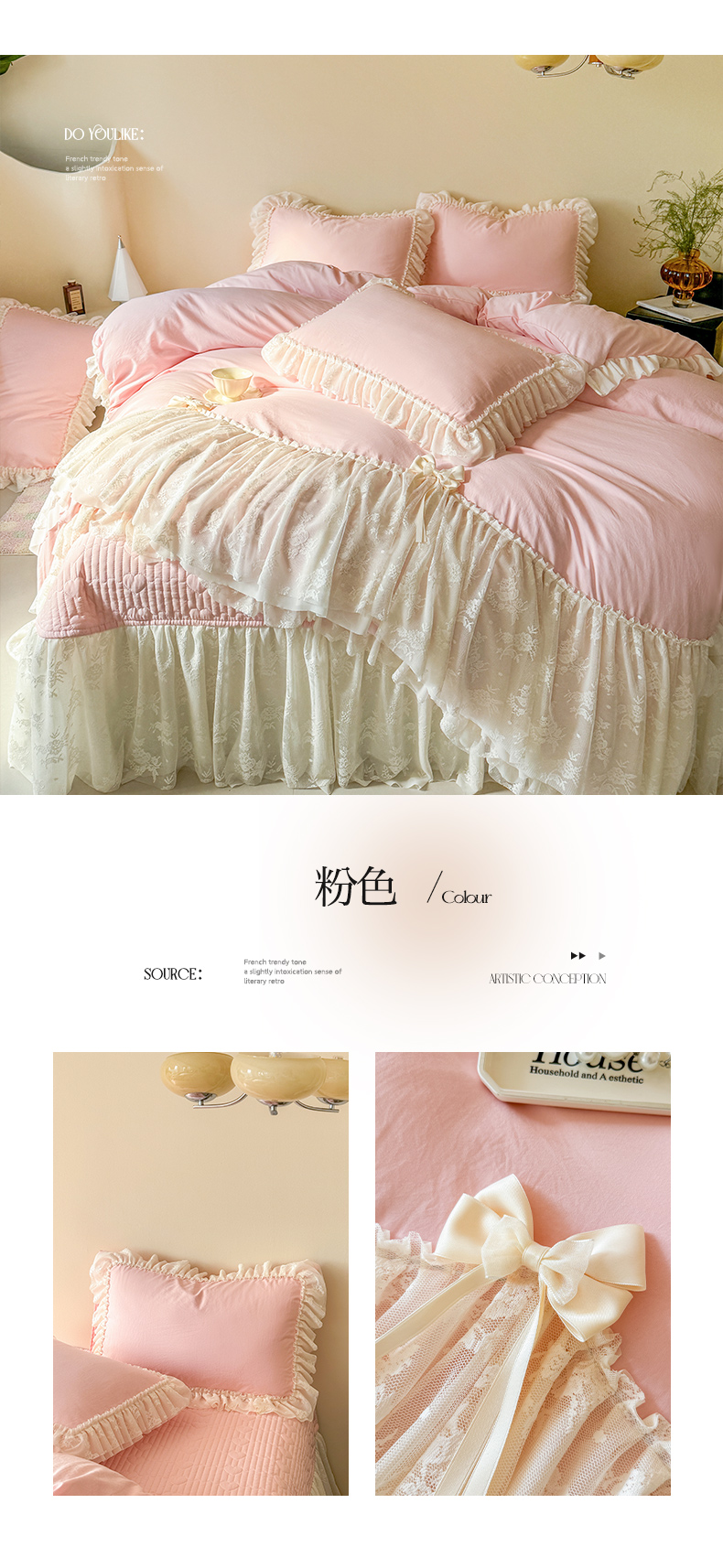 商品名称:富米莱(原臻工厂)2025新款法式高端白月光水洗棉床盖四件套 粉色