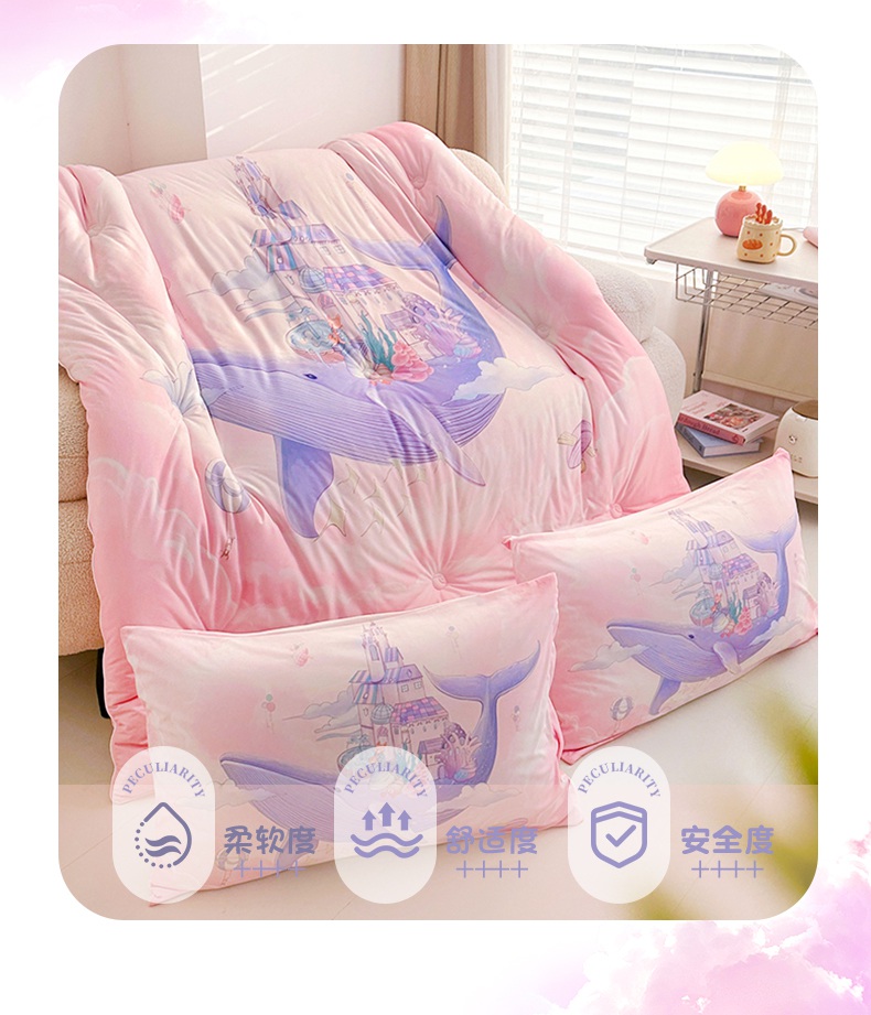 • 91家纺网 家纺一手货源 找家纺 丫丫家纺2025直播热款轻奢有机针织棉夏被春秋冬被双面大版卡通被子被芯儿童单人双人被(免费提供买家秀) 梦幻城堡 粉