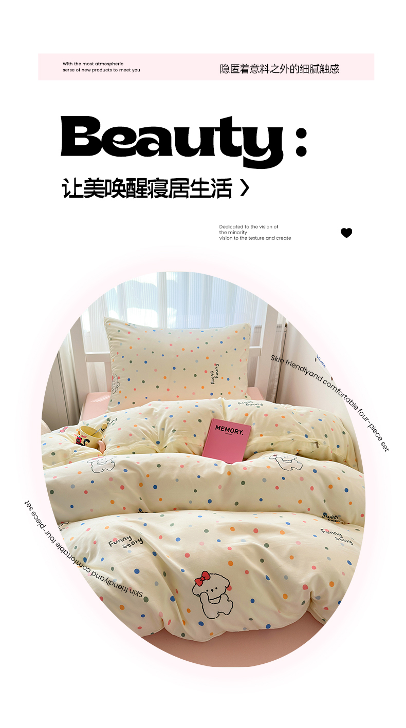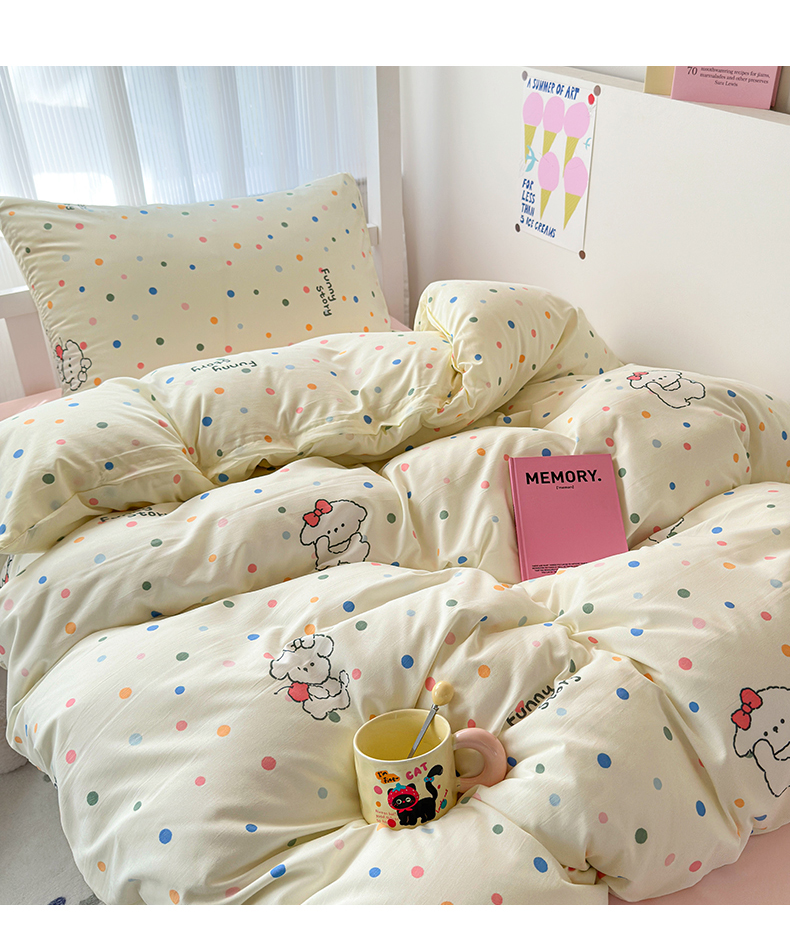 当前位置: 91家纺网 > 商品网购 > 床品套件 > 三件套 > 妖妖家纺2025新款学生宿舍床枕套定位水洗棉三件套四件套 彩点狗狗