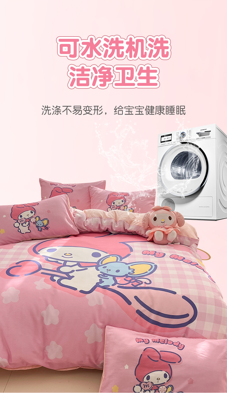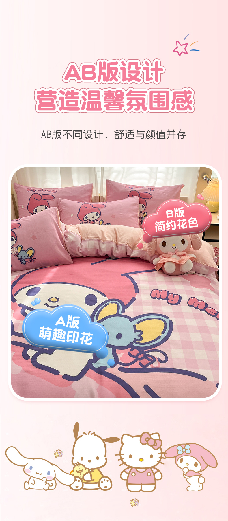 (总)孩子王家纺 2025新款卡通全棉纯棉正版授权小版三丽鸥四件套(含标),甜甜kt,晚安大耳狗,晚安美乐蒂,布丁库洛米,纯真美乐蒂,汉堡大耳狗,梦幻库洛米,奶猫kt,俏皮美乐蒂,甜库伙伴,甜糯凯蒂