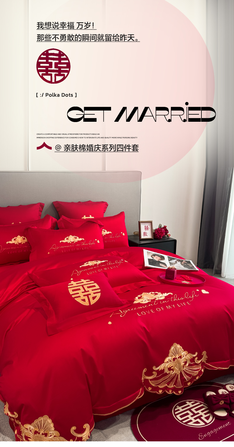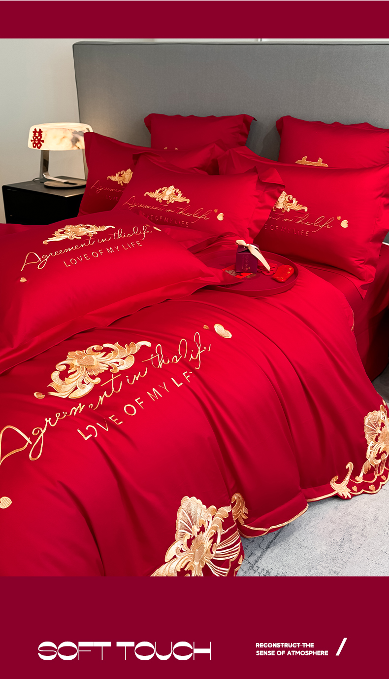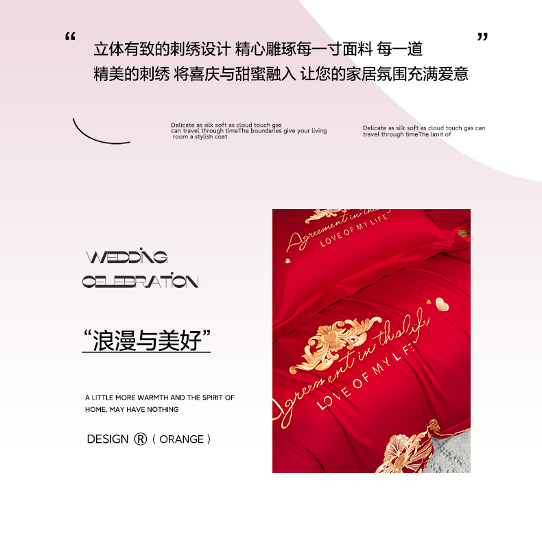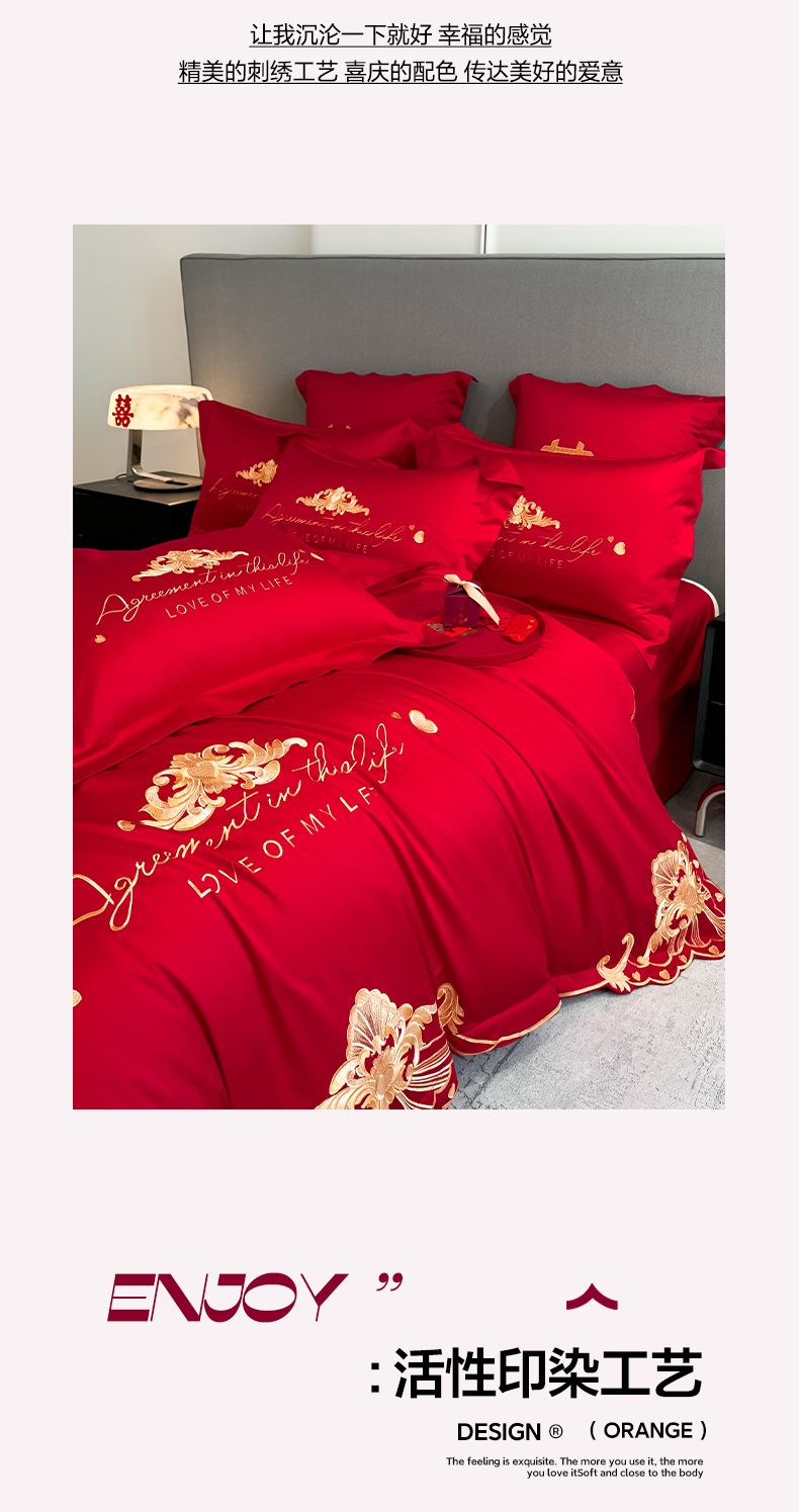 (总)欧乐蒂 2025新款婚庆款牛奶绒刺绣系列四件套-爱相随,爱相随-喜红,爱相随-金