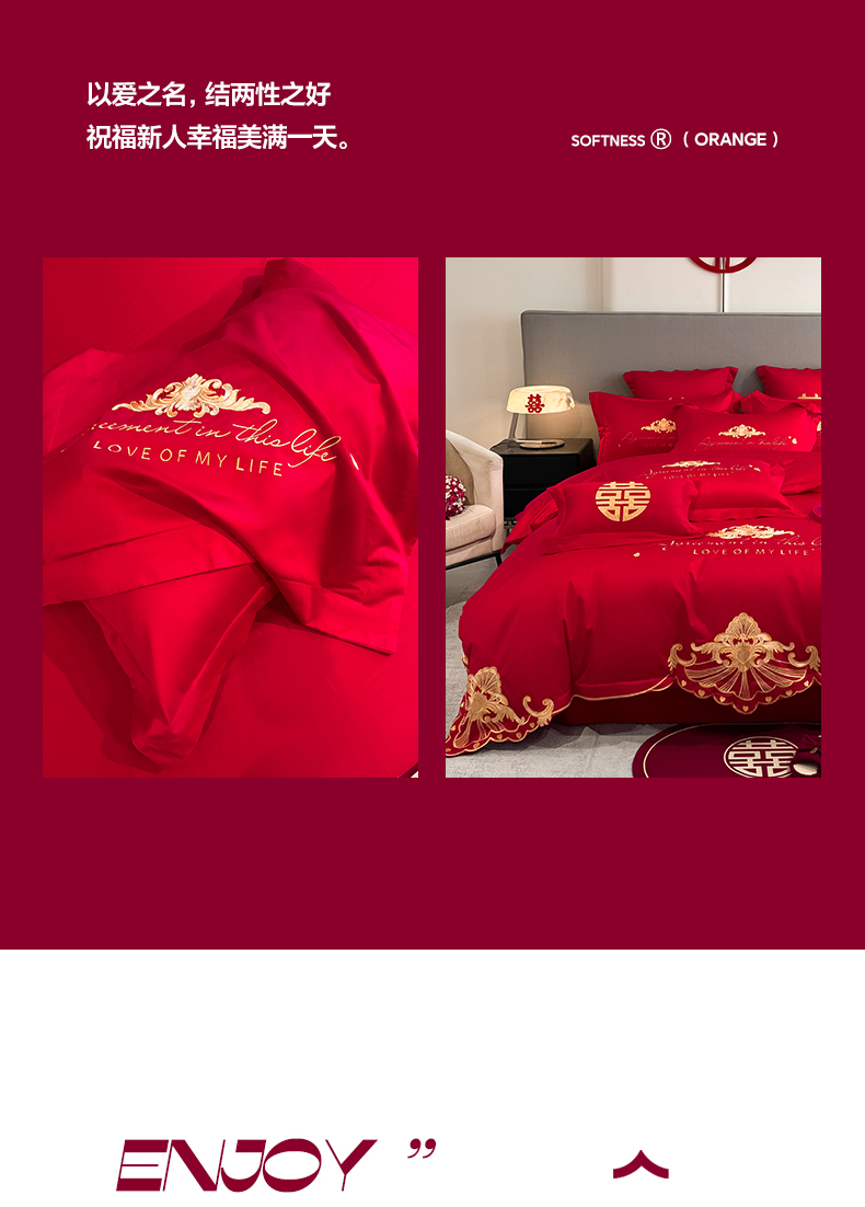 (总)欧乐蒂 2025新款全棉刺绣婚庆四件套,佳偶天成,龙凤和美,龙姿凤彩,玫瑰恋人,倾城之恋,双囍临门,甜蜜爱情,囍结良缘