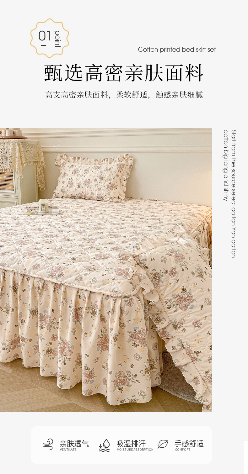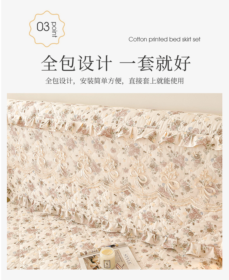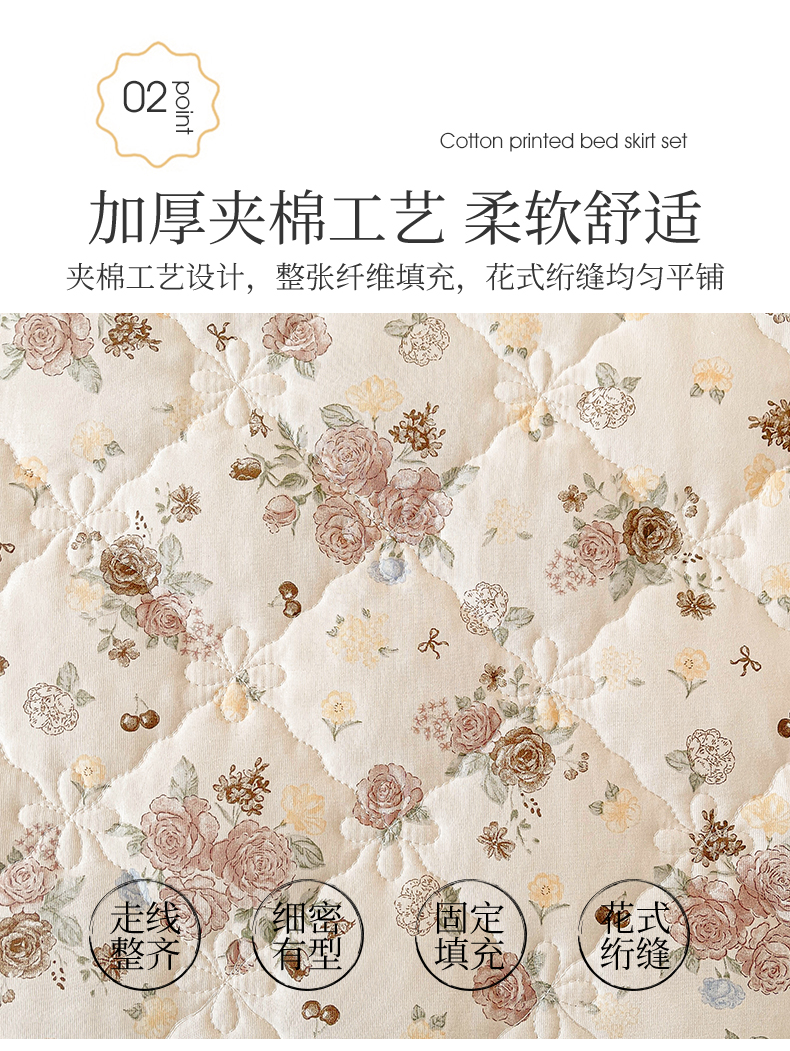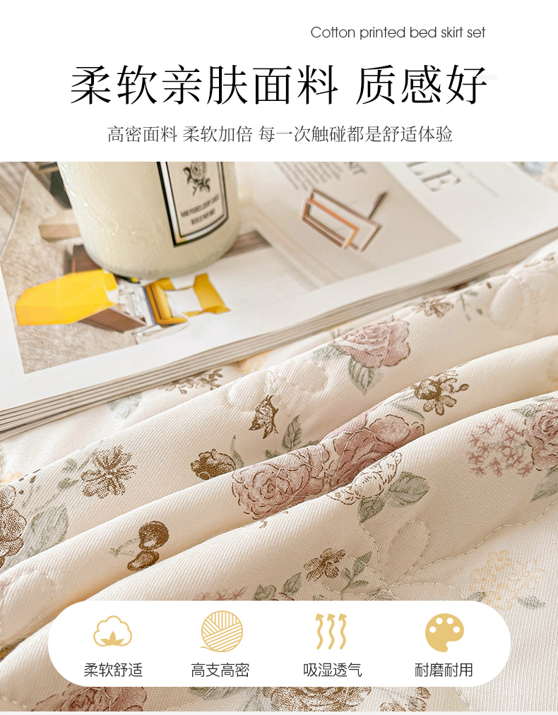 十个点2025新款针织棉 夹棉床笠式床裙床头罩系列 花香四季