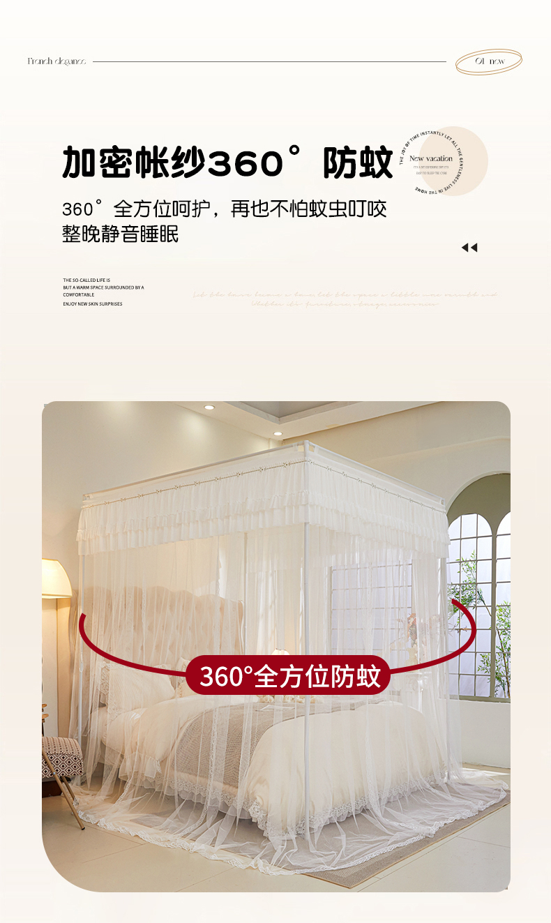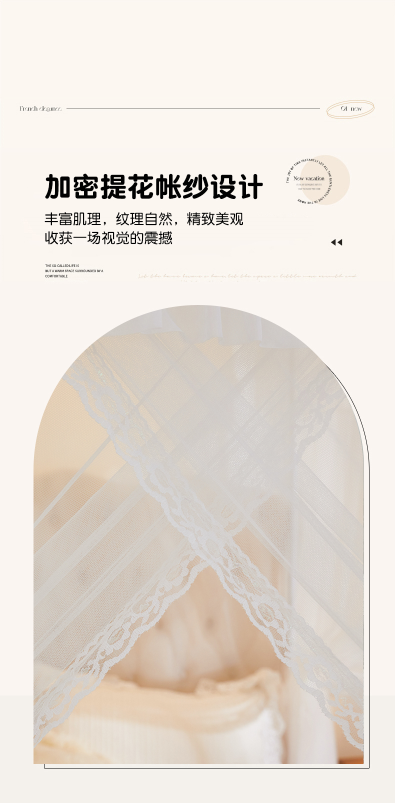 (总)梦尔佳蚊帐 2025新款双层花边床笠式三开门蚊帐-858怜香惜玉系列,优雅黄,富贵白,高级灰,温柔玉,清爽蓝