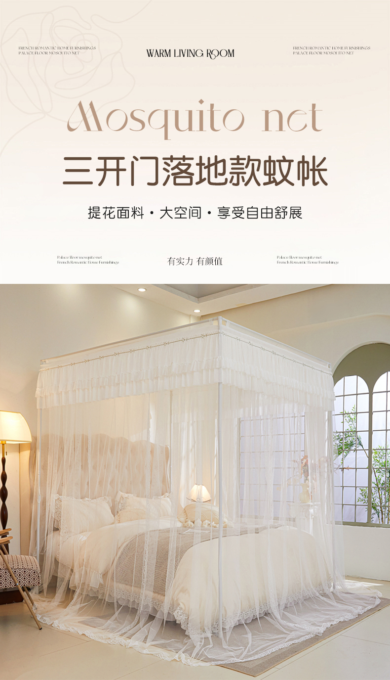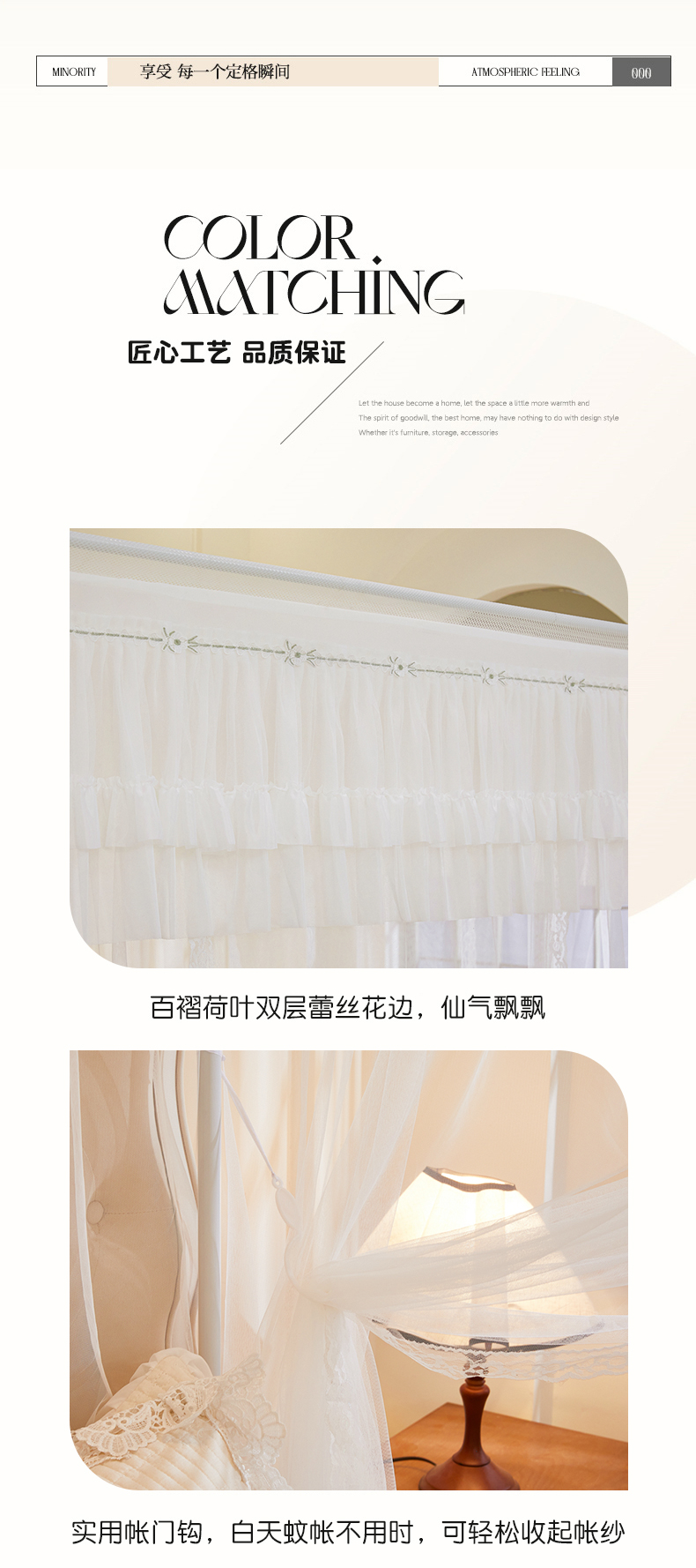 (总)梦尔佳 2025新款落地款蚊帐-怜香惜玉系列860型号,洁白,藕玉,米黄,五彩缤纷:蓝灰,淡蓝,五彩缤纷:白