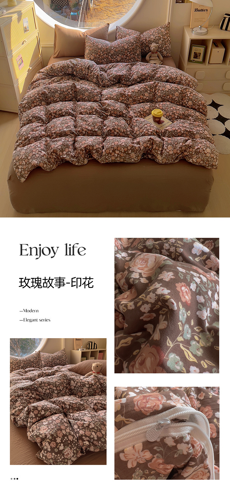 当前位置: 91家纺网 > 商品网购 > 床品套件 > 四件套 > 化纤普通四件套 > 2025耀达新款舒适水洗棉印花四件套 玫瑰故事-印花