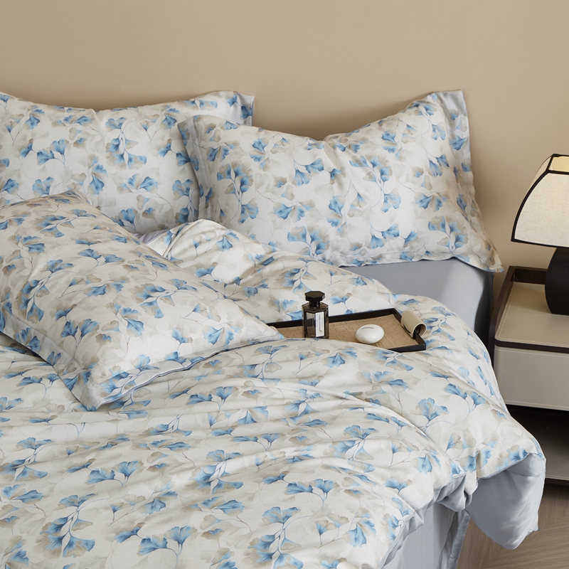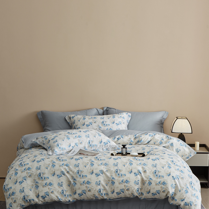 商品名称:顾家家居 2025新款莱塞尔兰精天丝印花四件套 玥瑶