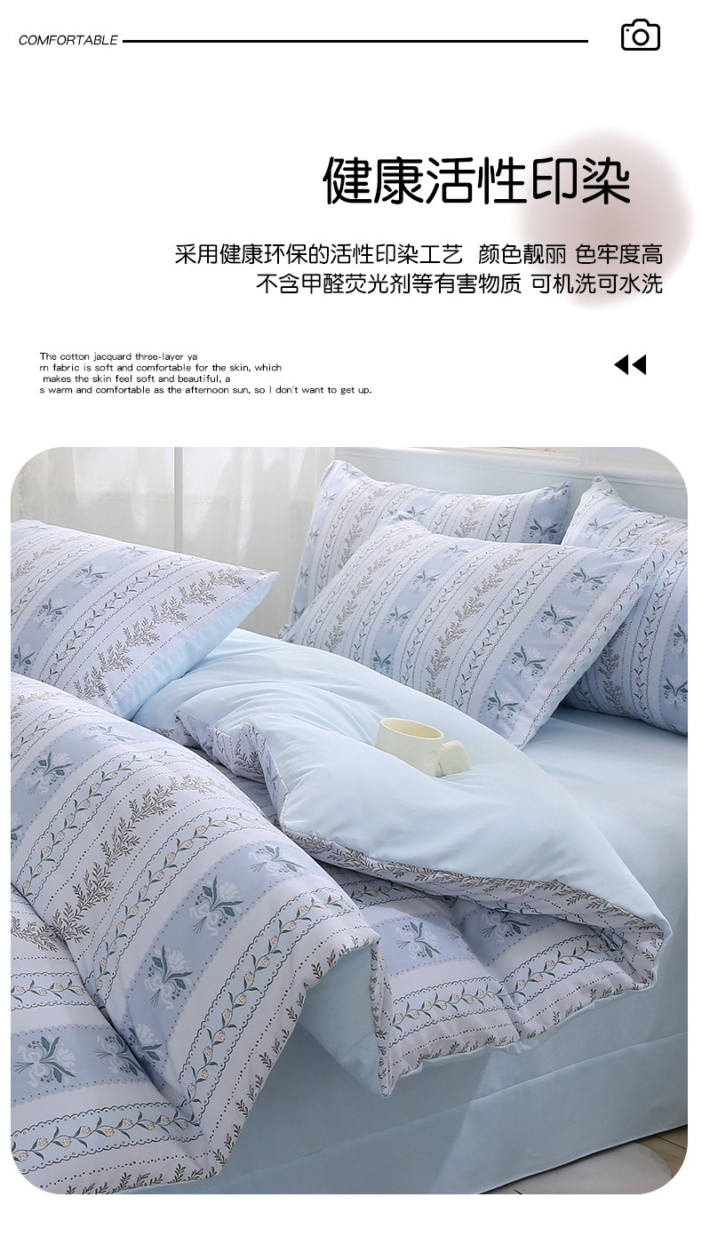 商品名称:织写 2025新款A类双层纱针织棉四件套床单四件套床单四件套小清新四件套 初享时光-蓝