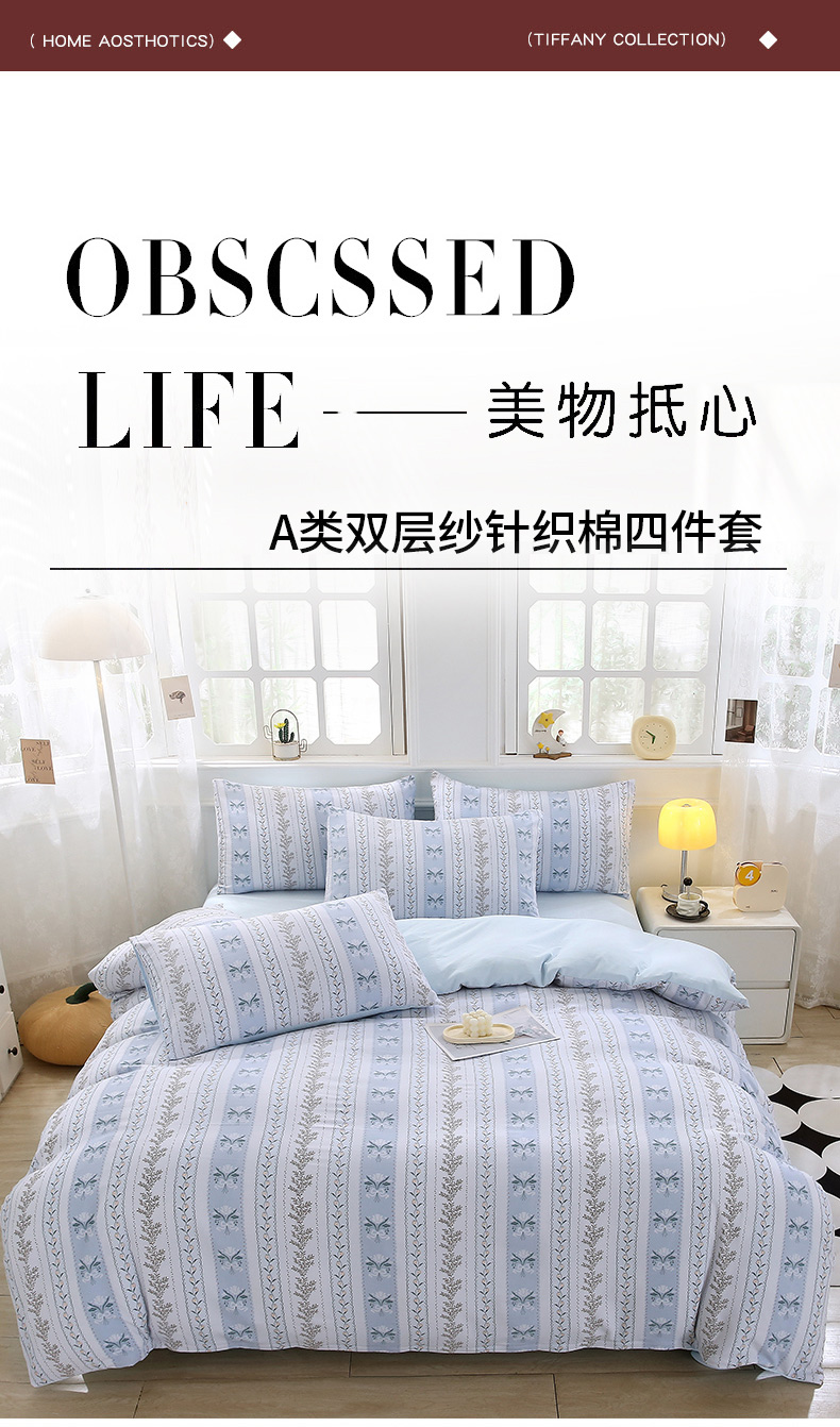 织写 2025新款A类双层纱针织棉四件套床单四件套床单四件套小清新四件套 初享时光-蓝