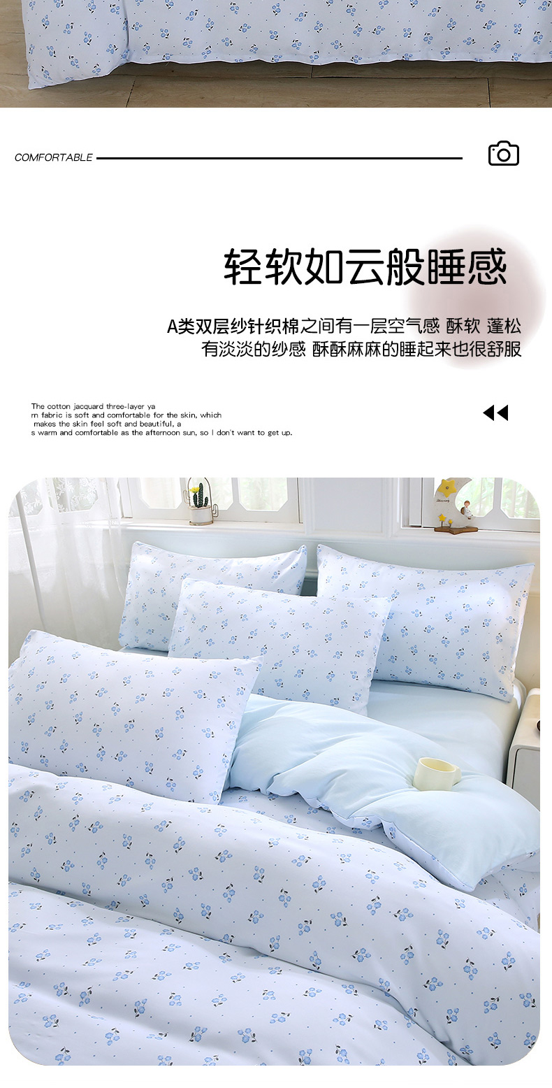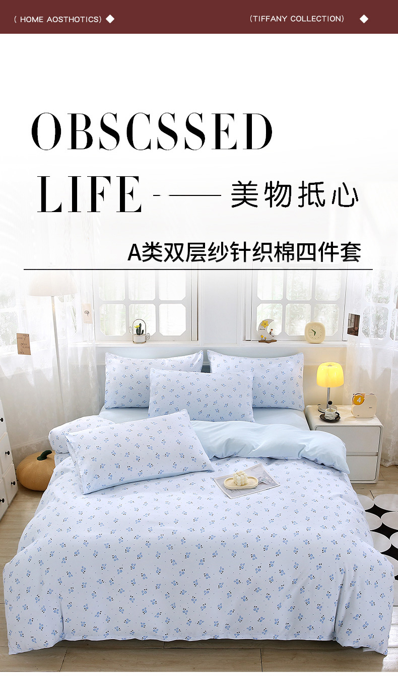 织写 2025新款A类双层纱针织棉四件套床单四件套床单四件套小清新四件套 琉璃