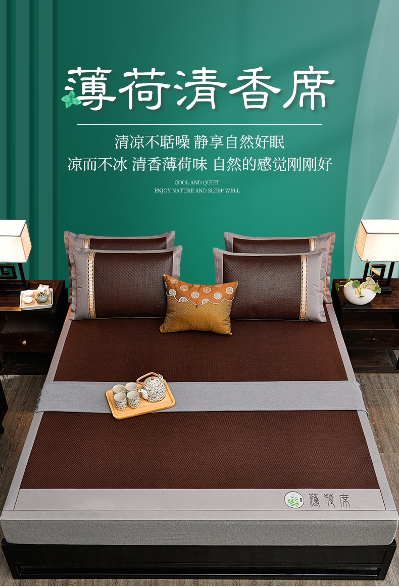 小牛席业 2025新款经典款薄荷清香-双面席系列(纯藤席面))凉席藤席冰藤席竹席空调席草席冰丝席豆豆席乳胶席三 薄荷清香席-黑咖