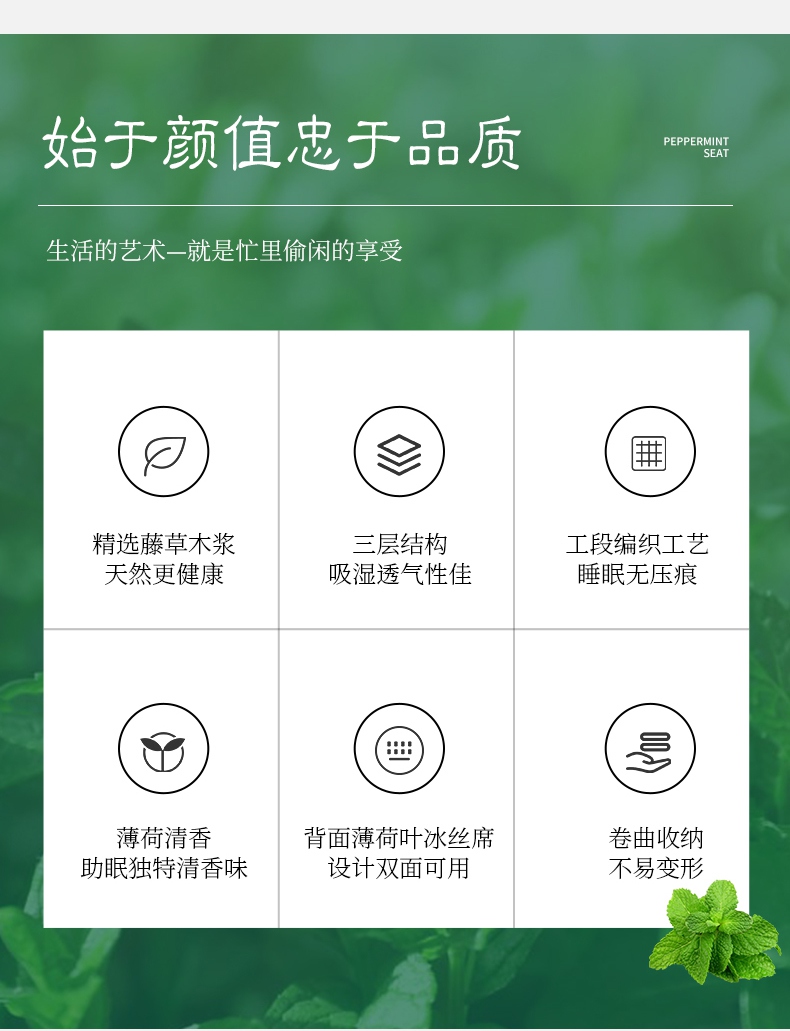 2023新款夏日冰点-冰藤双面席凉席藤席竹席冰丝席乳胶席,咖色,蓝色,绿色,香槟