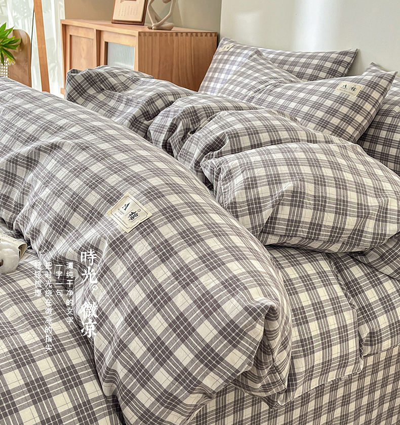 (总)21度C 2025新款色织全棉夏被四件套,可可灰,可可兰,蓝小格,沐妍黄,沐妍灰,雅格蓝,雅格绿,洋气红,洋气咖