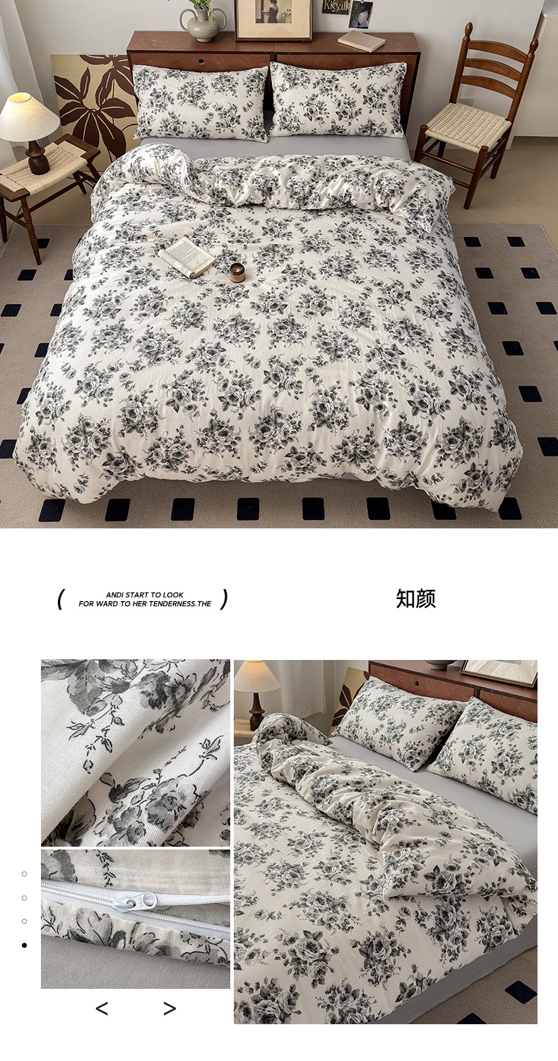 商品名称:典曼家纺 2025新款双层纱小清新印花四件套-叠拍 知颜