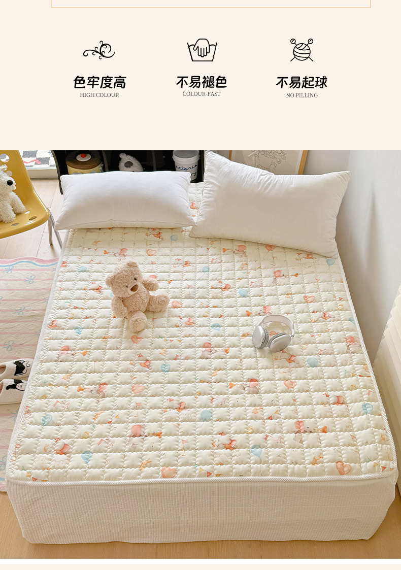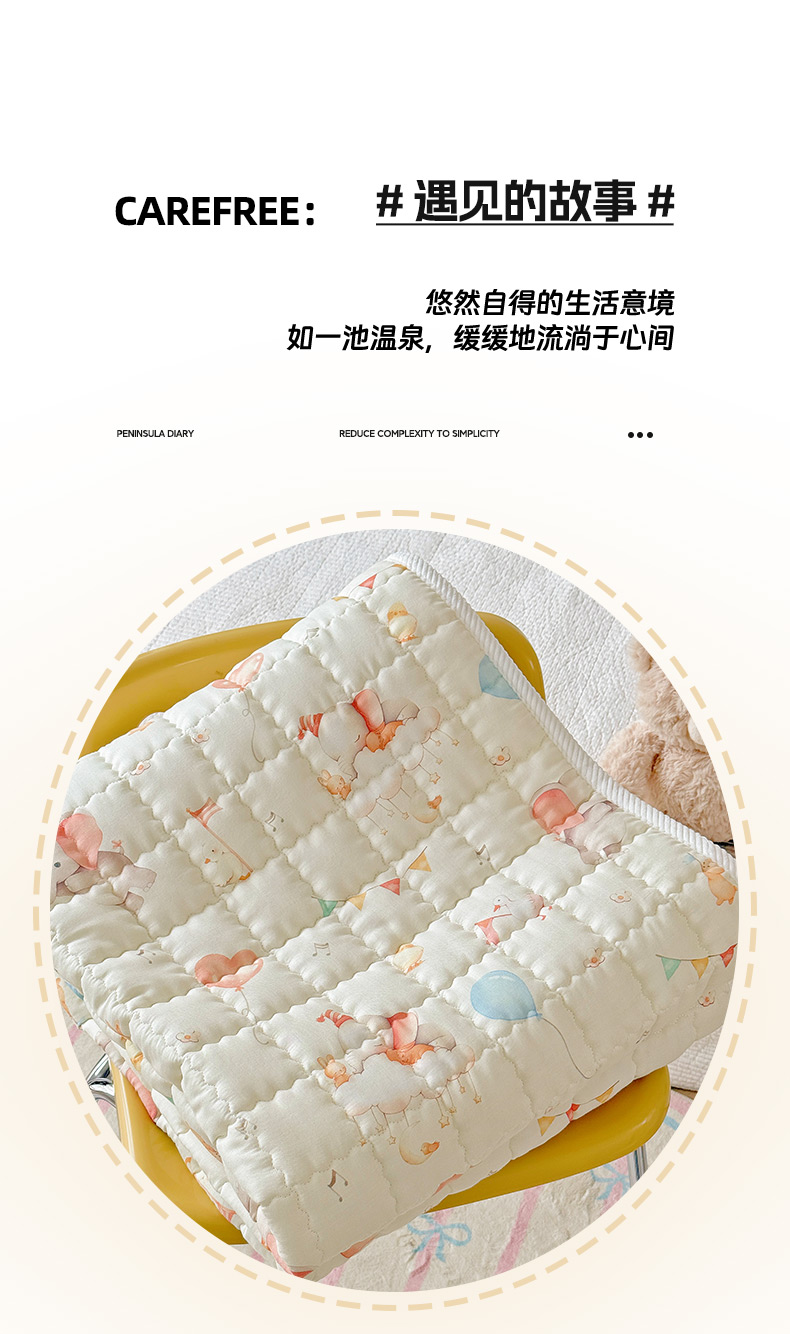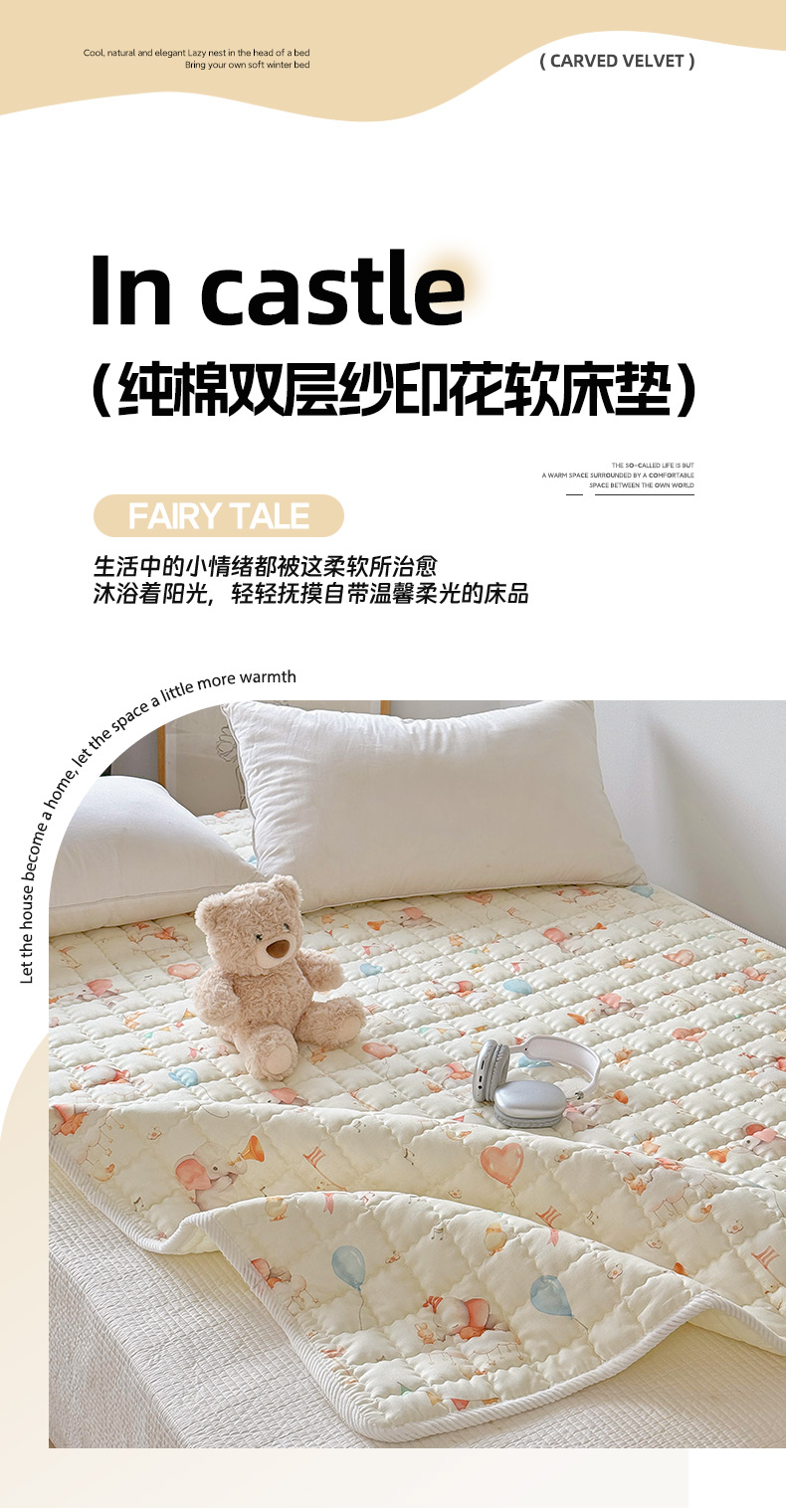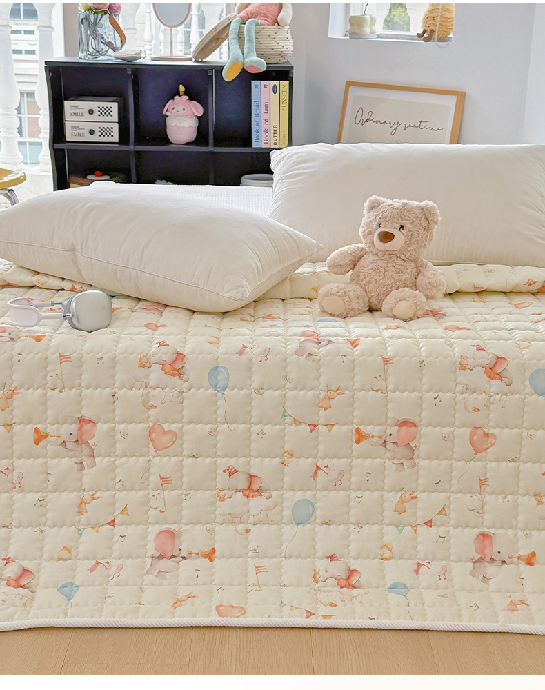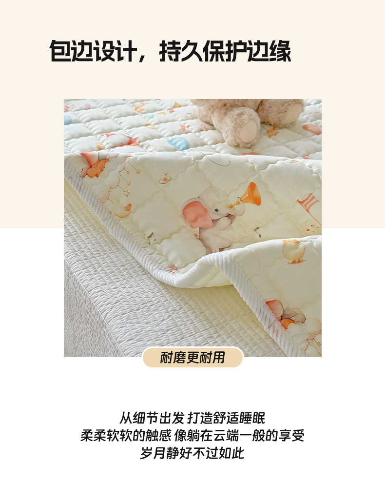 商品名称:澳萝拉 2025新款纯棉双层纱印花软床垫床褥 派对小象