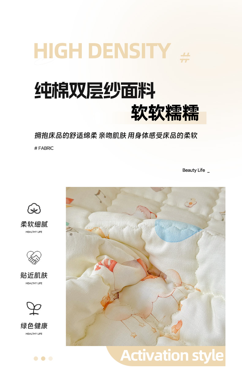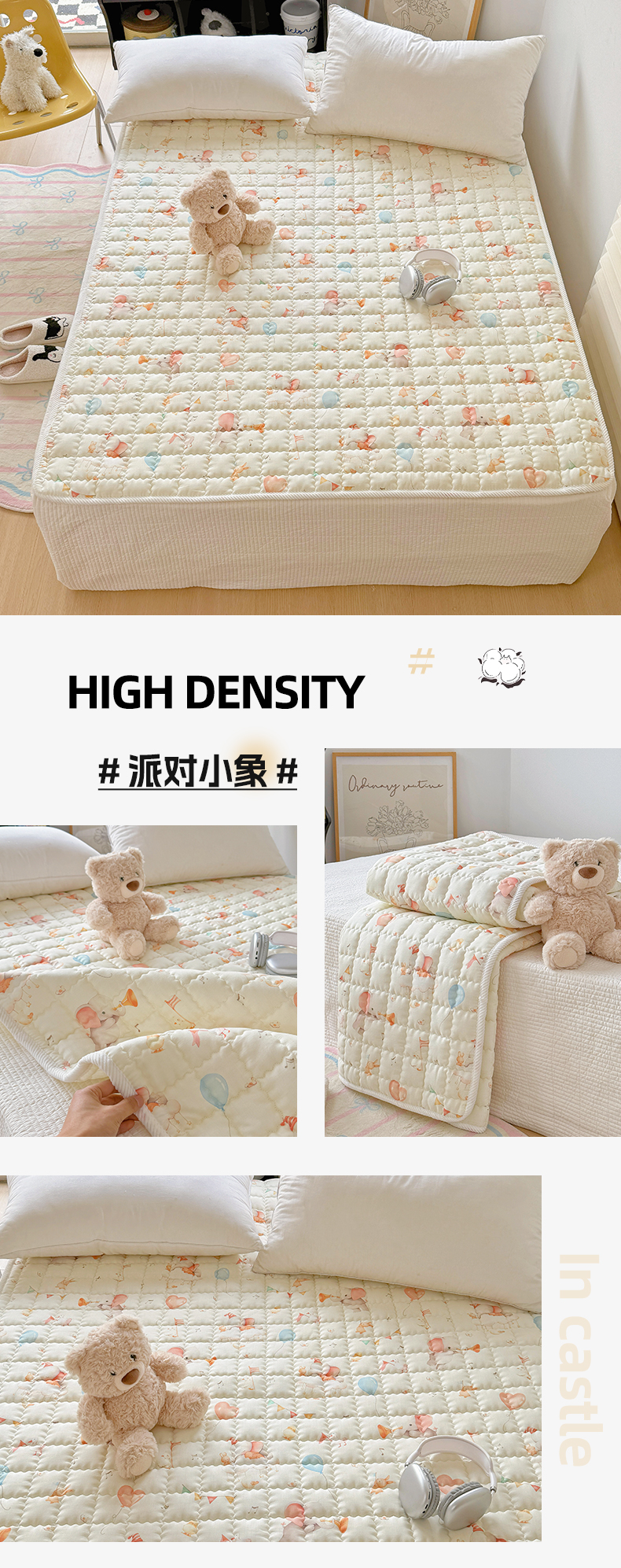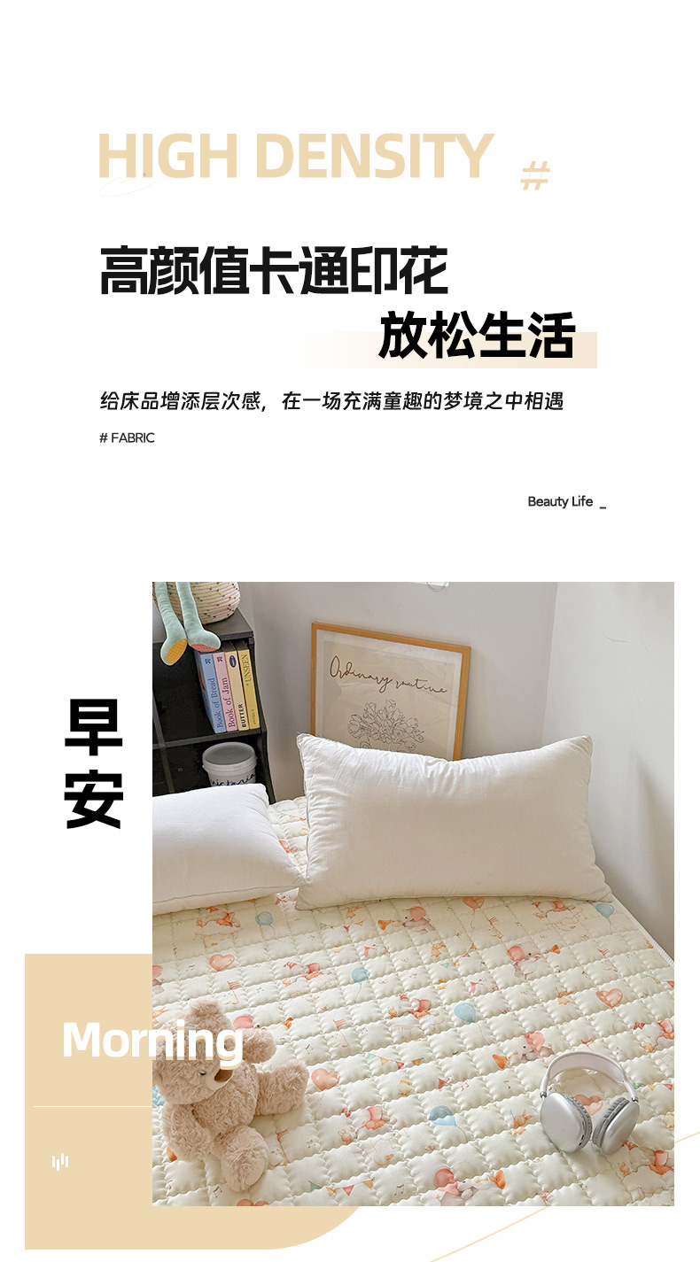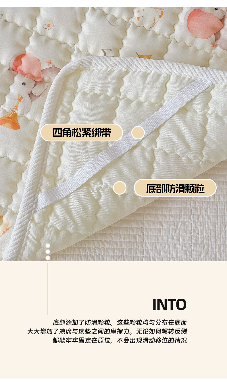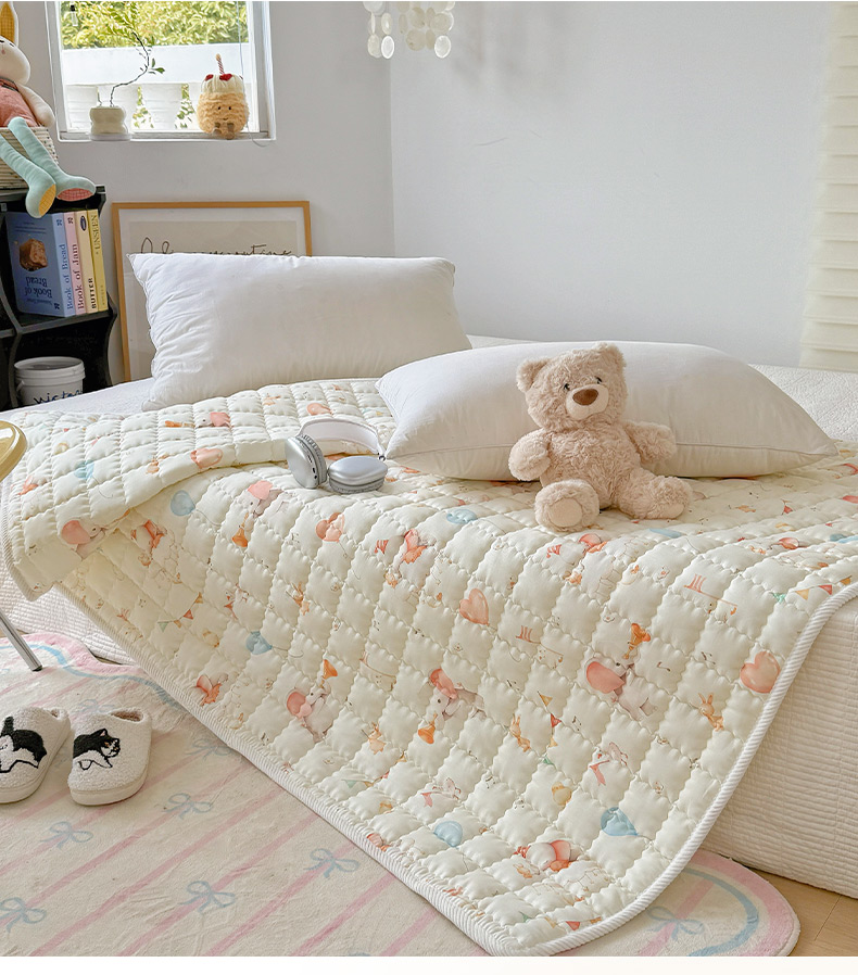 商品名称:澳萝拉 2025新款纯棉双层纱印花软床垫床褥 派对小象