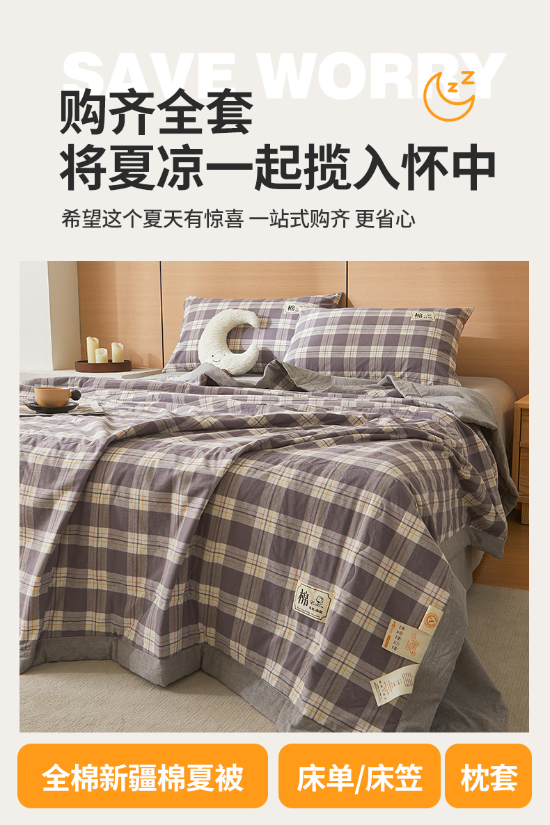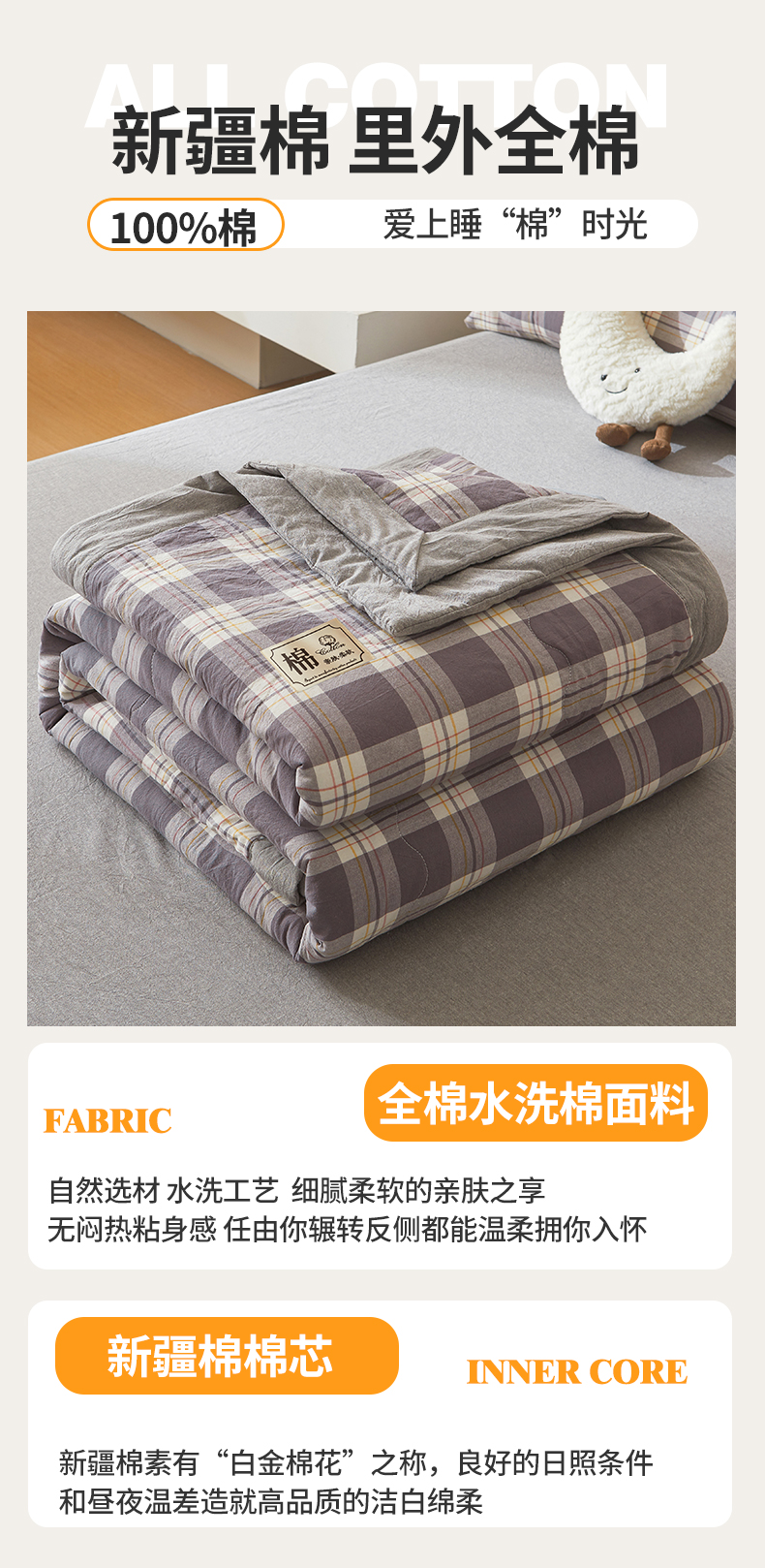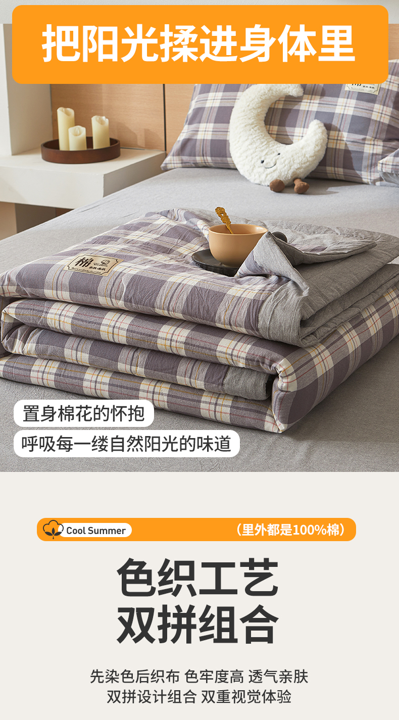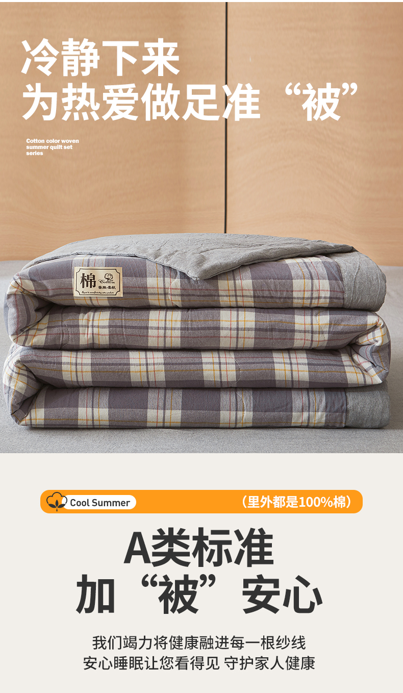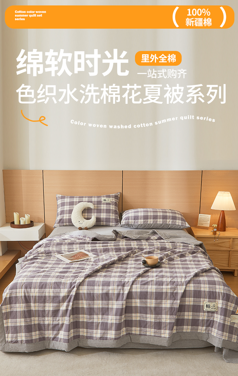 • 91家纺网 家纺一手货源 找家纺 招财星家纺 2025新款新疆棉花被夏被100%里外全棉棉花夏被无印风全棉色织水洗棉夏凉被空调被春秋被单人可机洗 密语