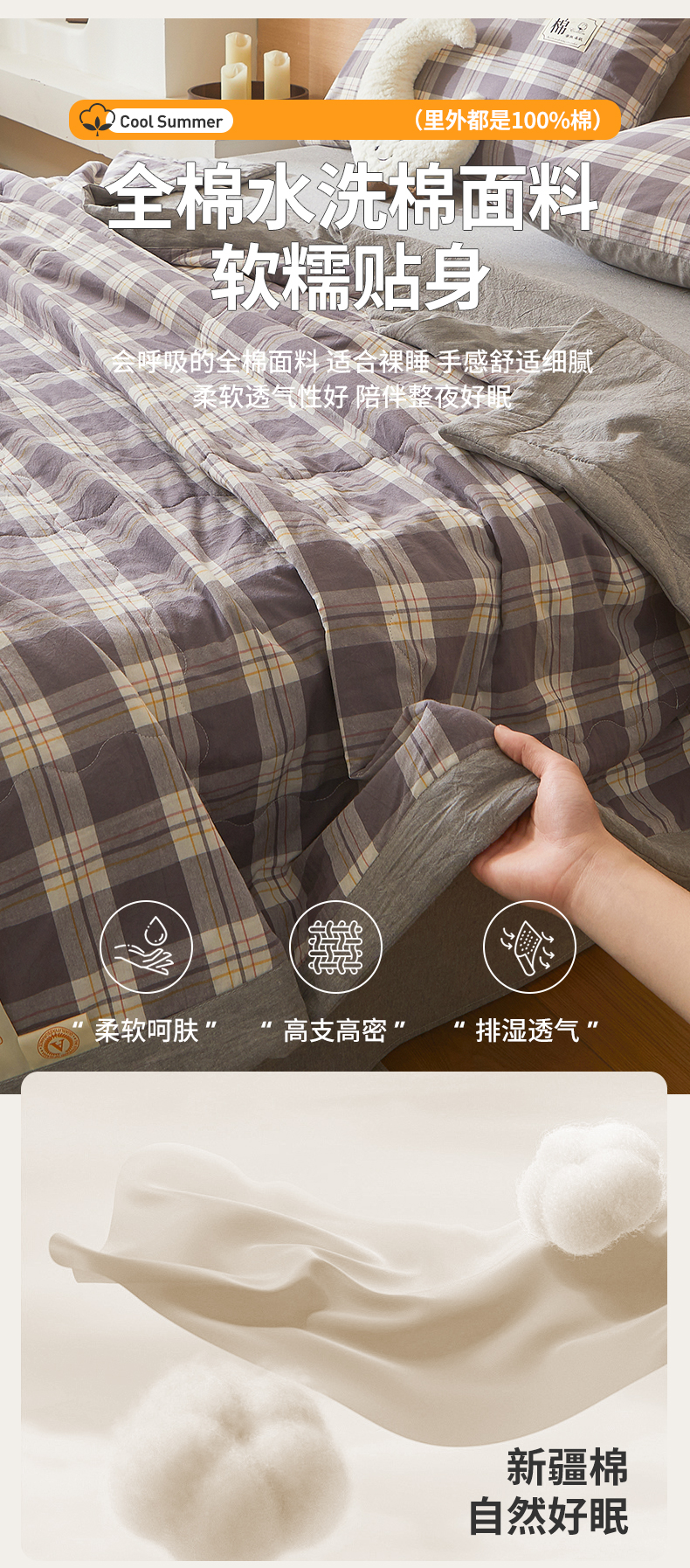 招财星家纺 2025新款新疆棉花被夏被100%里外全棉棉花夏被无印风全棉色织水洗棉夏凉被空调被春秋被单人可机洗 密语