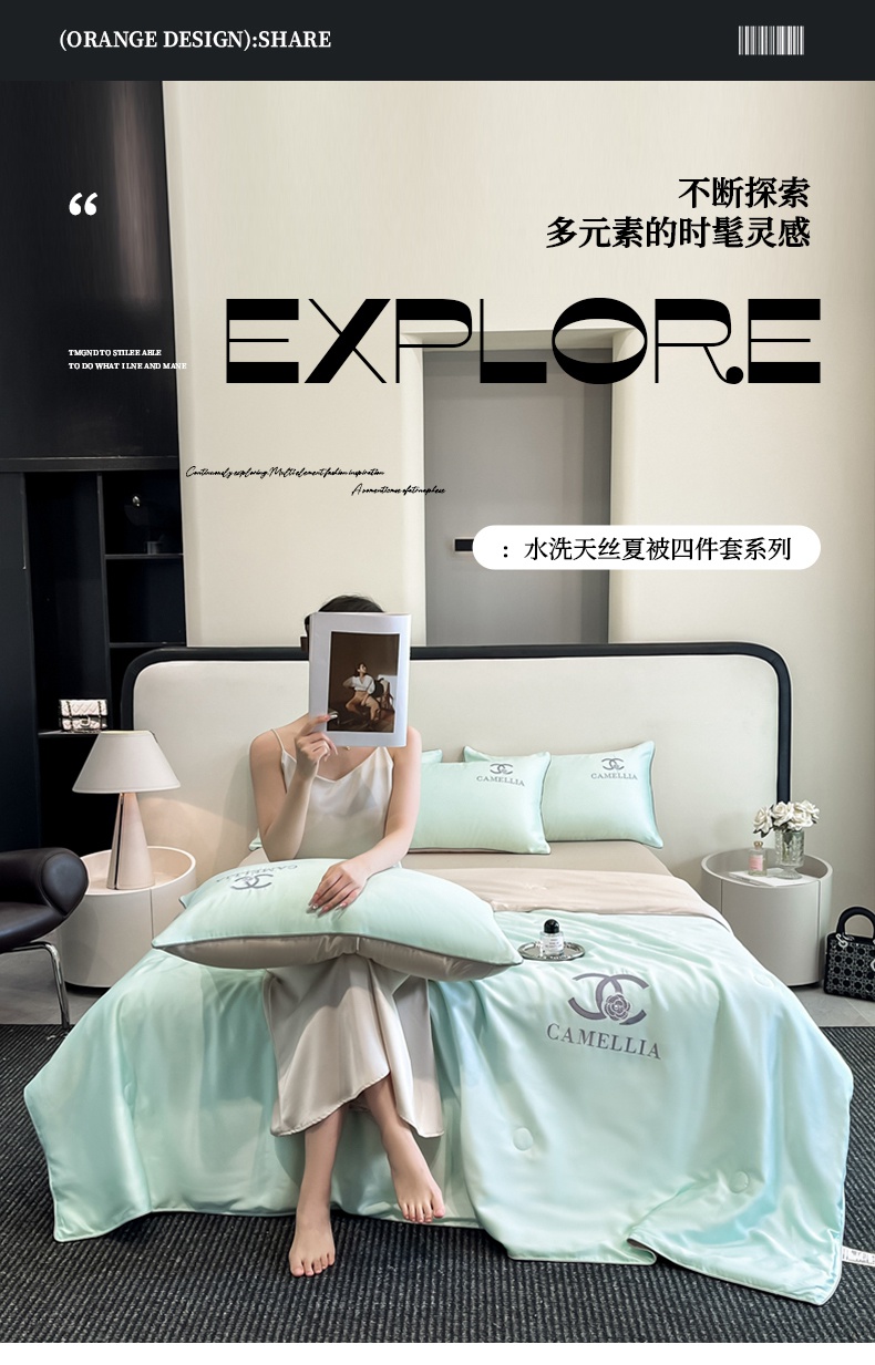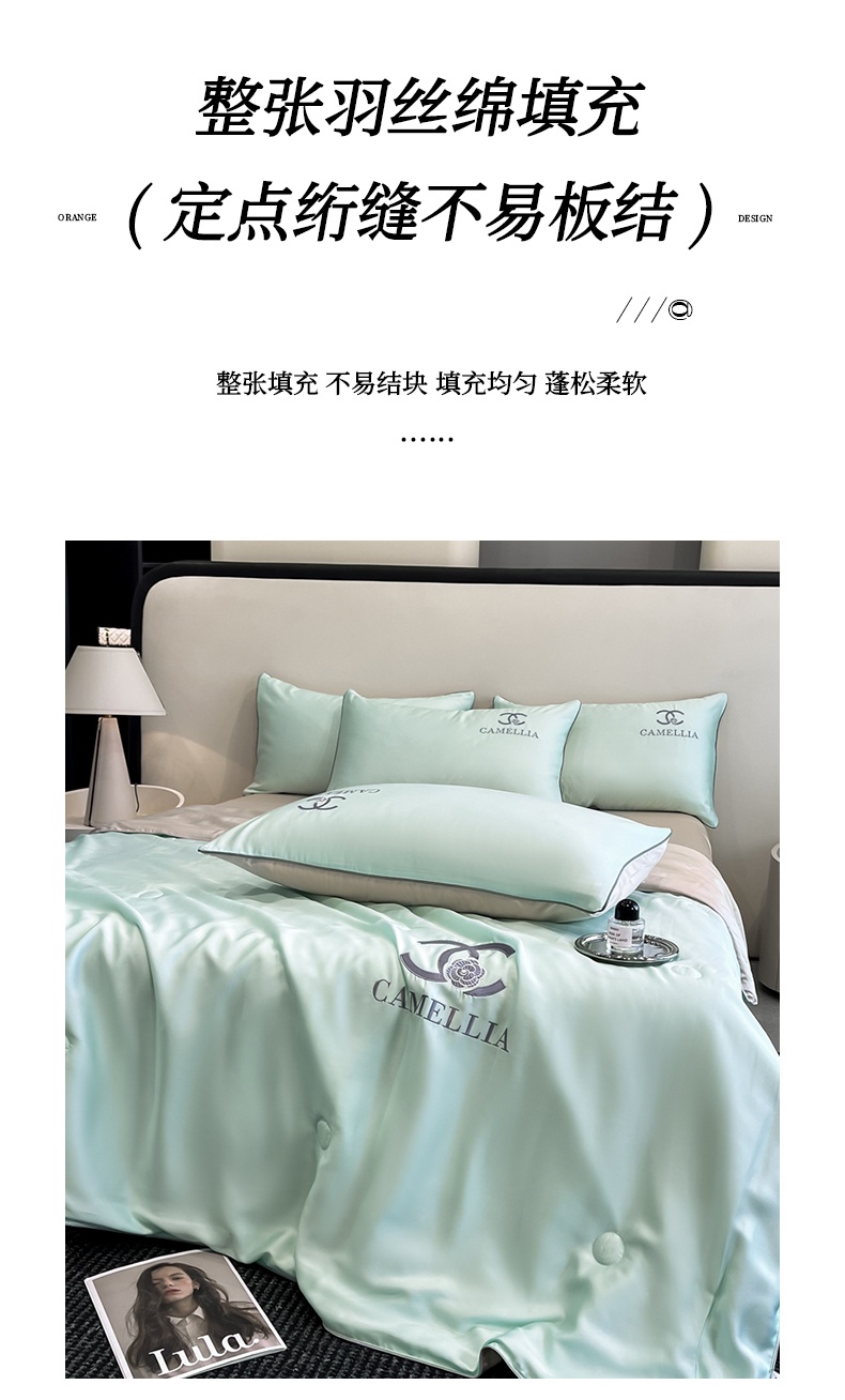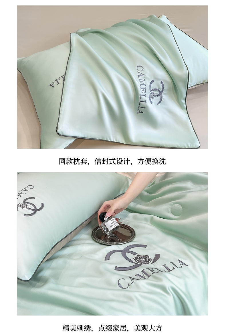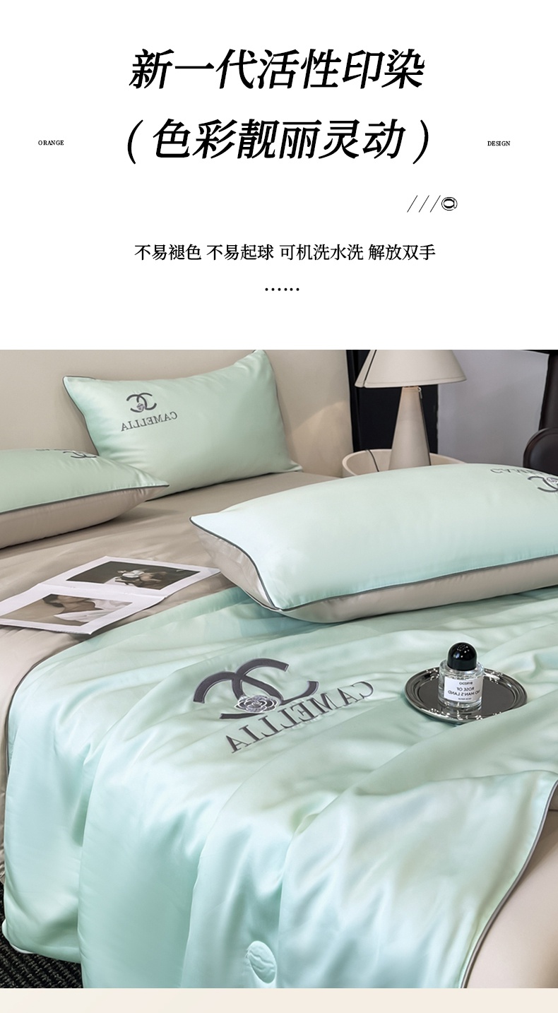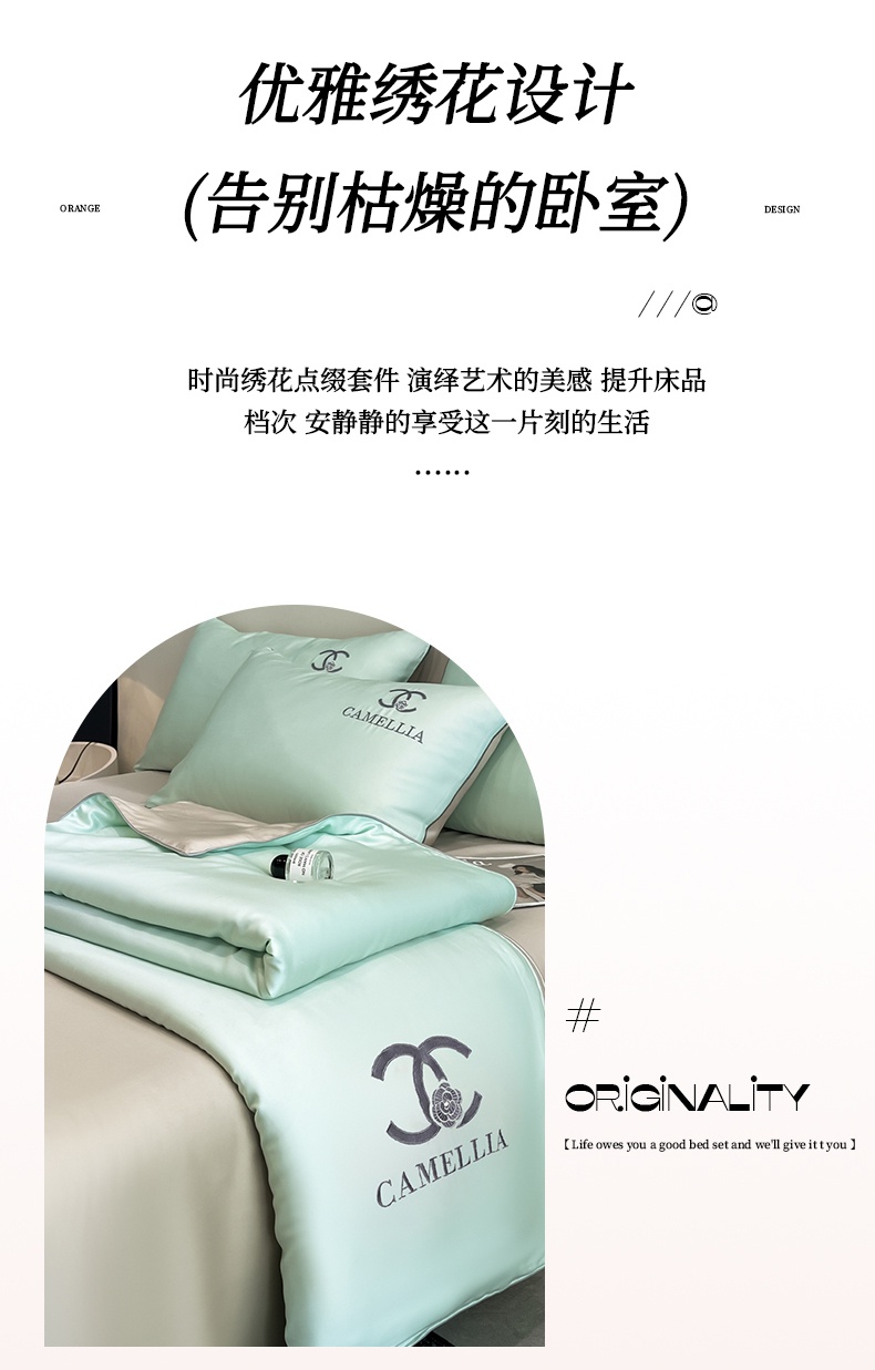 • 91家纺网 家纺一手货源 找家纺 利欧 2025新款茶花水洗天丝夏被四件套 茶花-抹茶绿+米驼