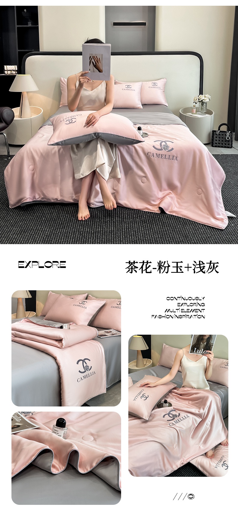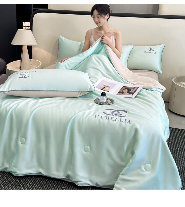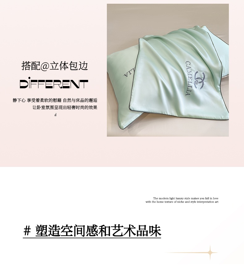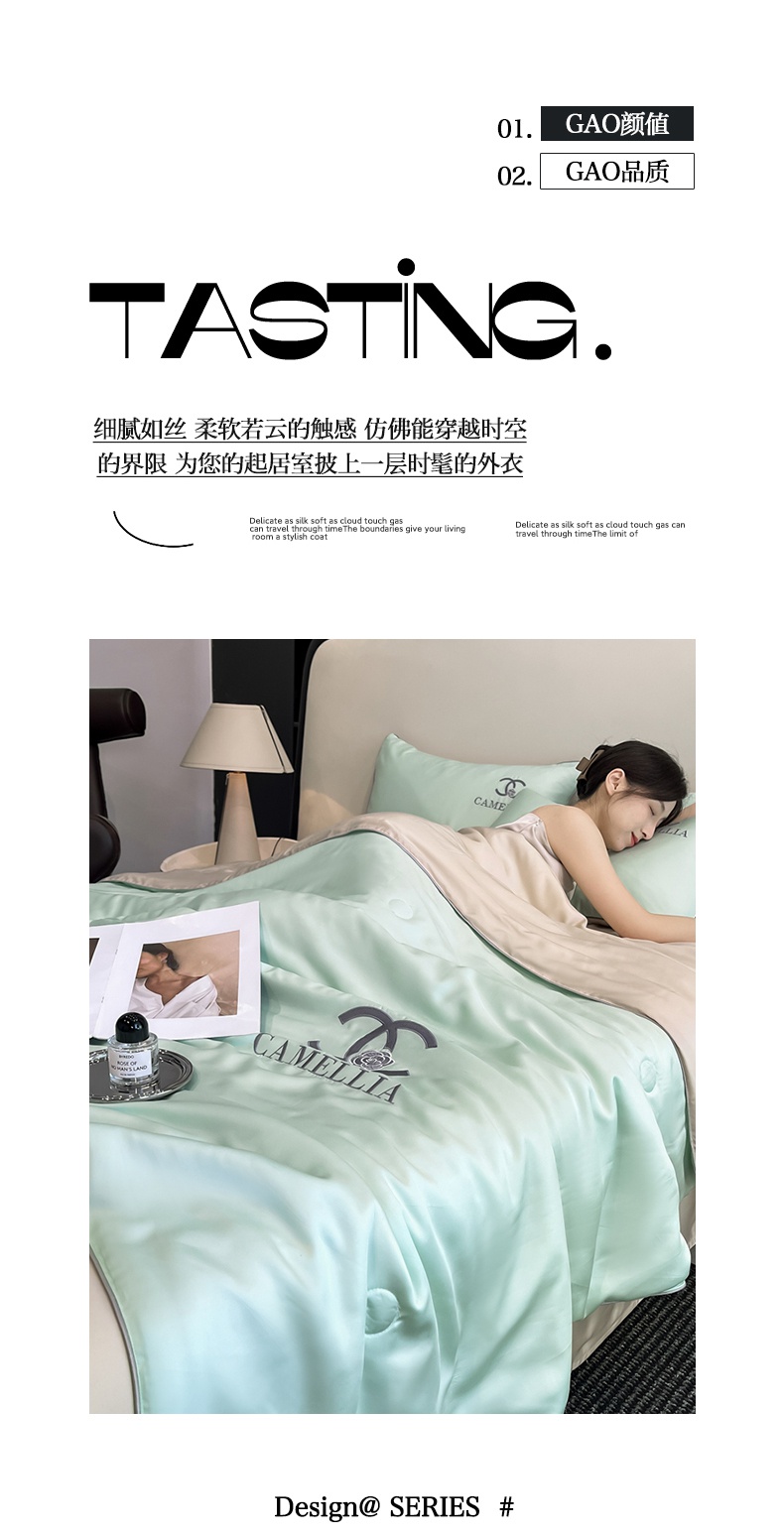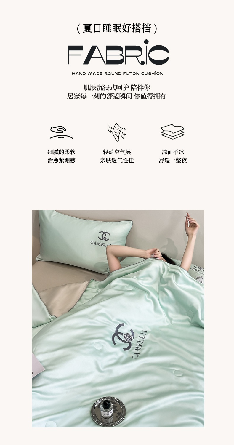 • 91家纺网 家纺一手货源 找家纺 利欧 2025新款茶花水洗天丝夏被四件套 茶花-抹茶绿+米驼