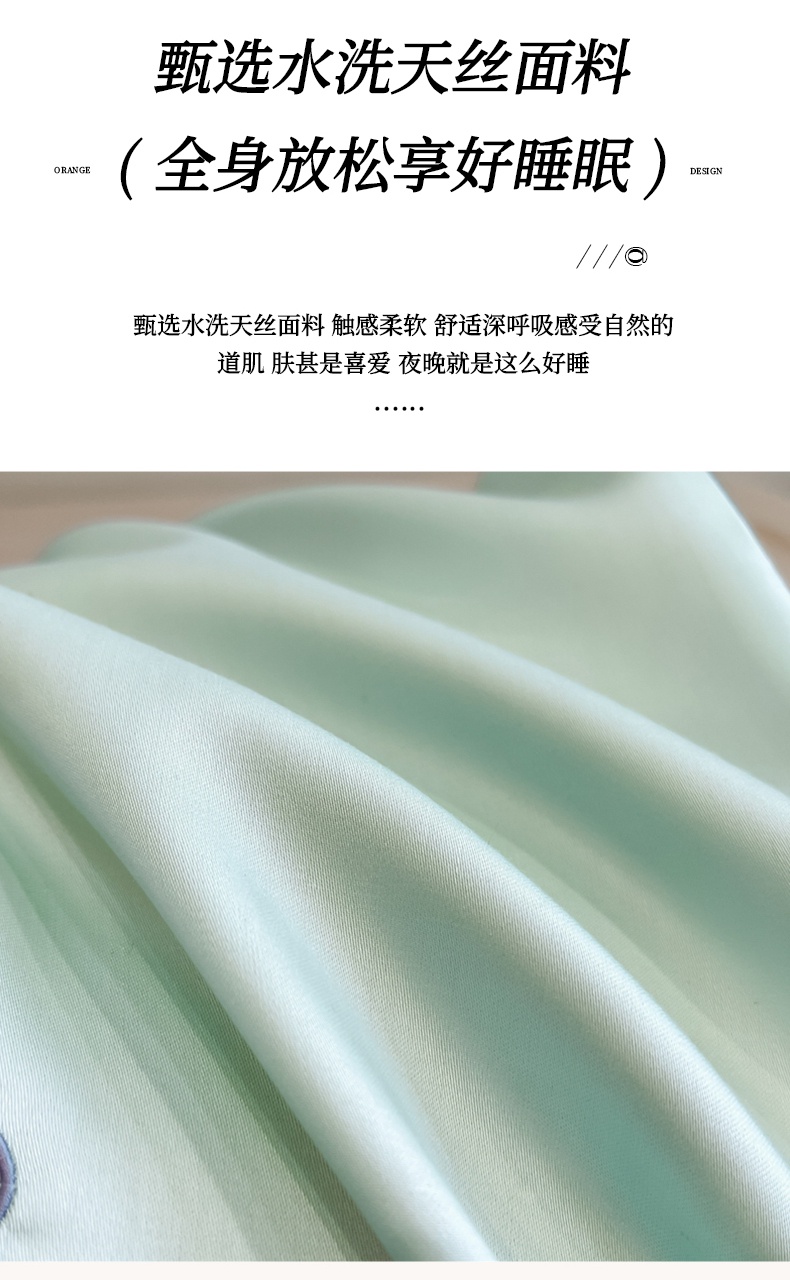 利欧 2025新款茶花水洗天丝夏被四件套 茶花-抹茶绿+米驼