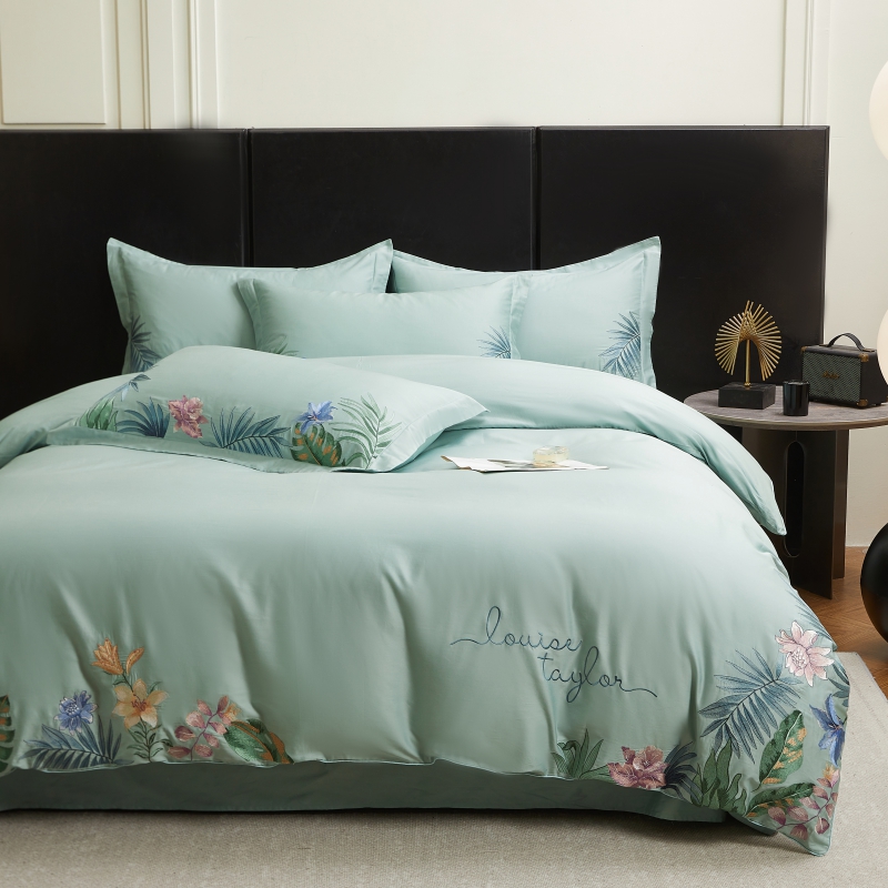 (总)布乐意 2021新欧美风绣花40S全棉轻奢风四件套纯棉,宾利蓝,草绿,淡雅蓝,豆沙,粉色,金黄,咖啡,浅紫,银灰,紫色