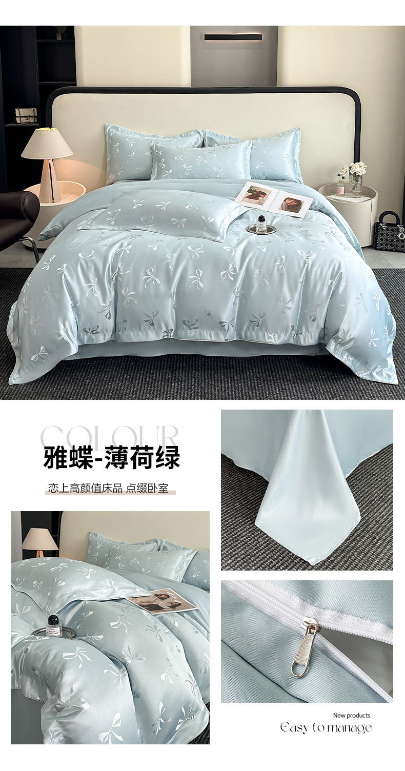 金阳光家纺 2025新款亮丝提花水洗天丝四件套 雅蝶-薄荷绿