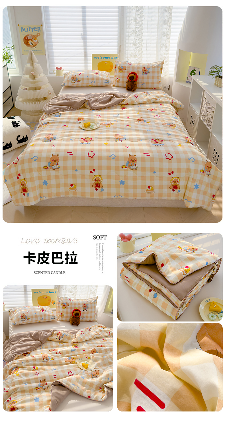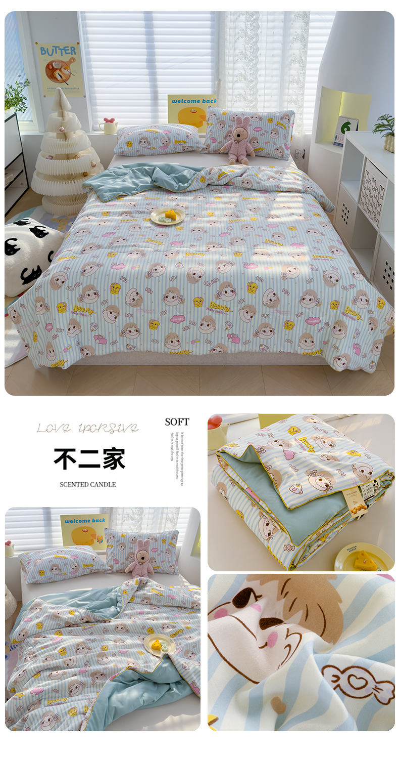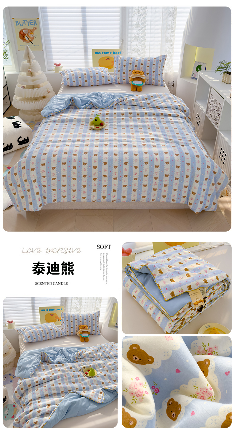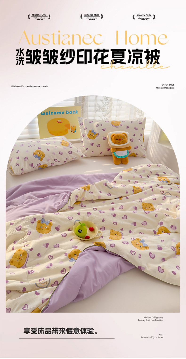 (总)弗苓家纺 2025新款A类皱皱纱印花夏被,爱丽丝,糖小佳,格语,乐翻天,眠眠狗,奶油波点,泰迪熊,夕颜,小熊卷卷