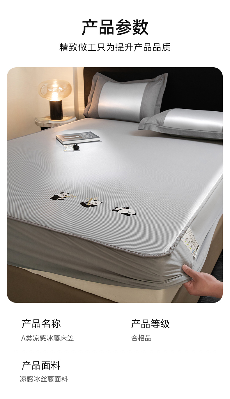 商品名称:绒 多宝 2025新款冰丝藤席凉席可折叠空调席卡通冰丝席防滑床笠款 淡雅灰(床笠款)