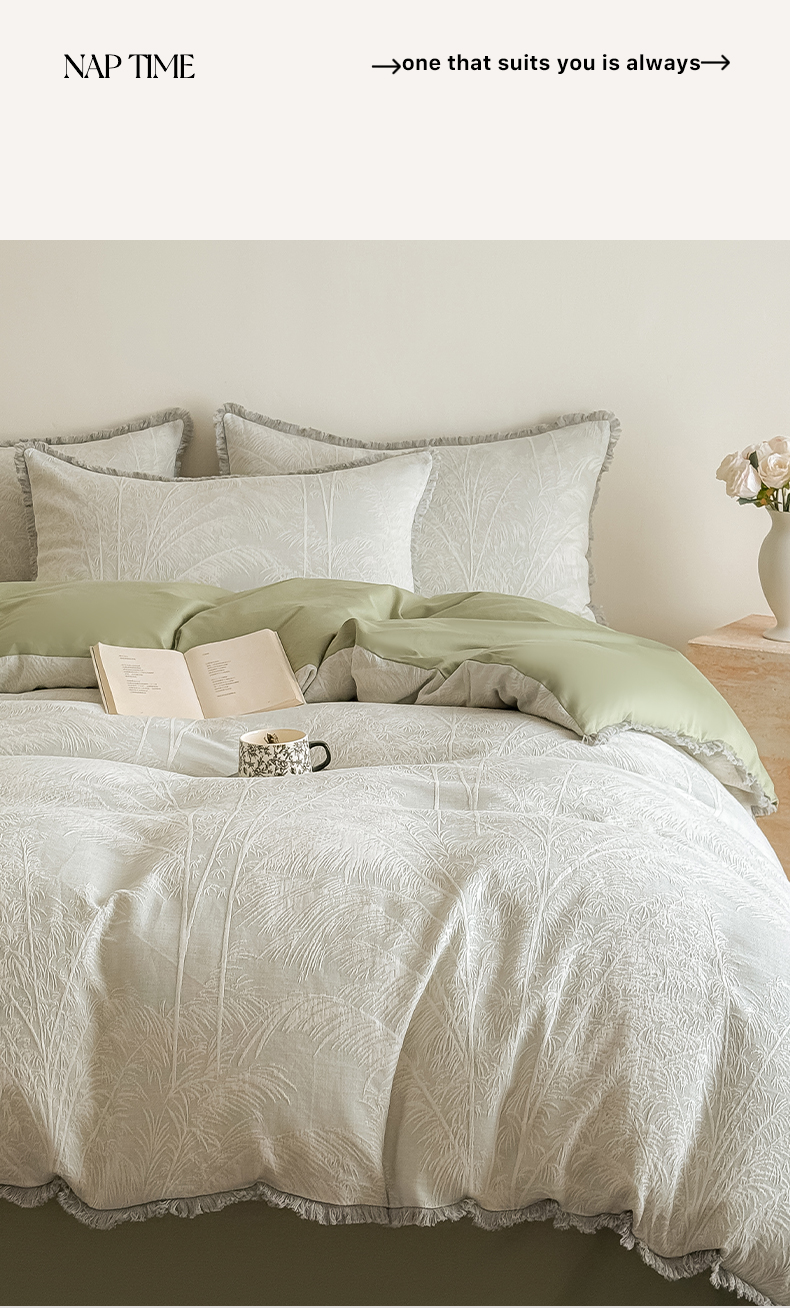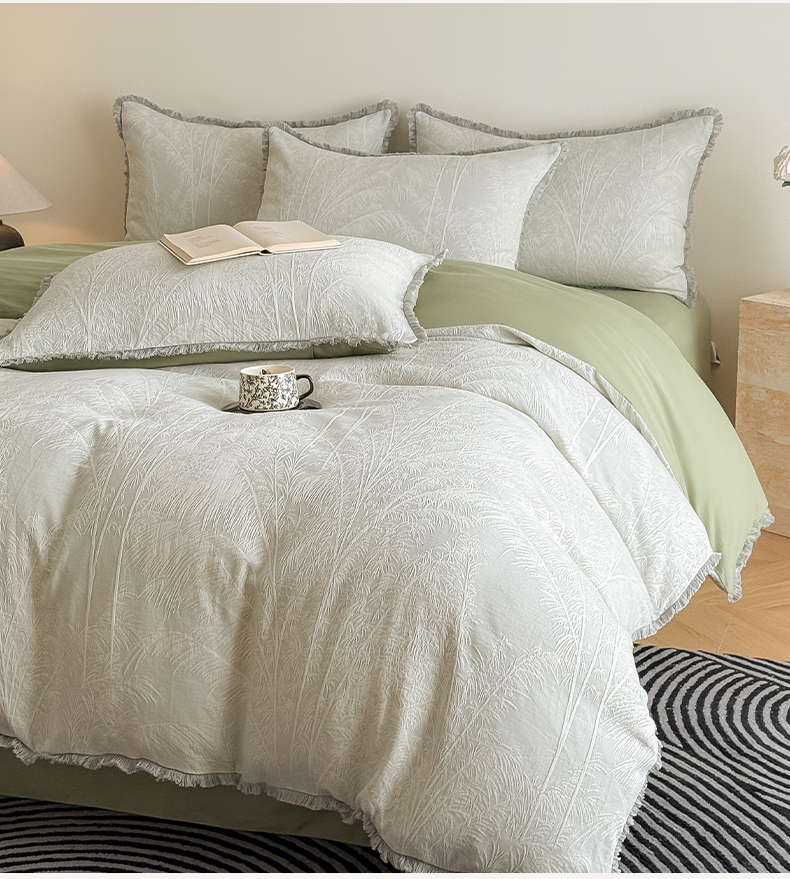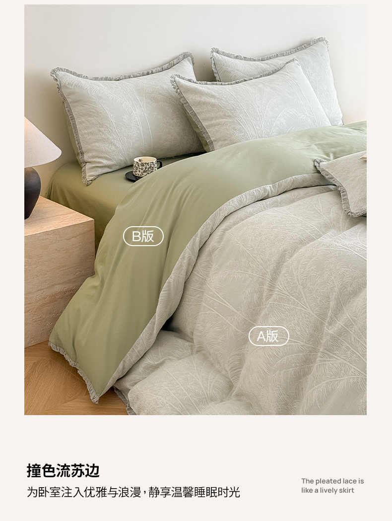 商品名称:极简 2025新款全棉三层纱提花四件套 西雅图-茶绿