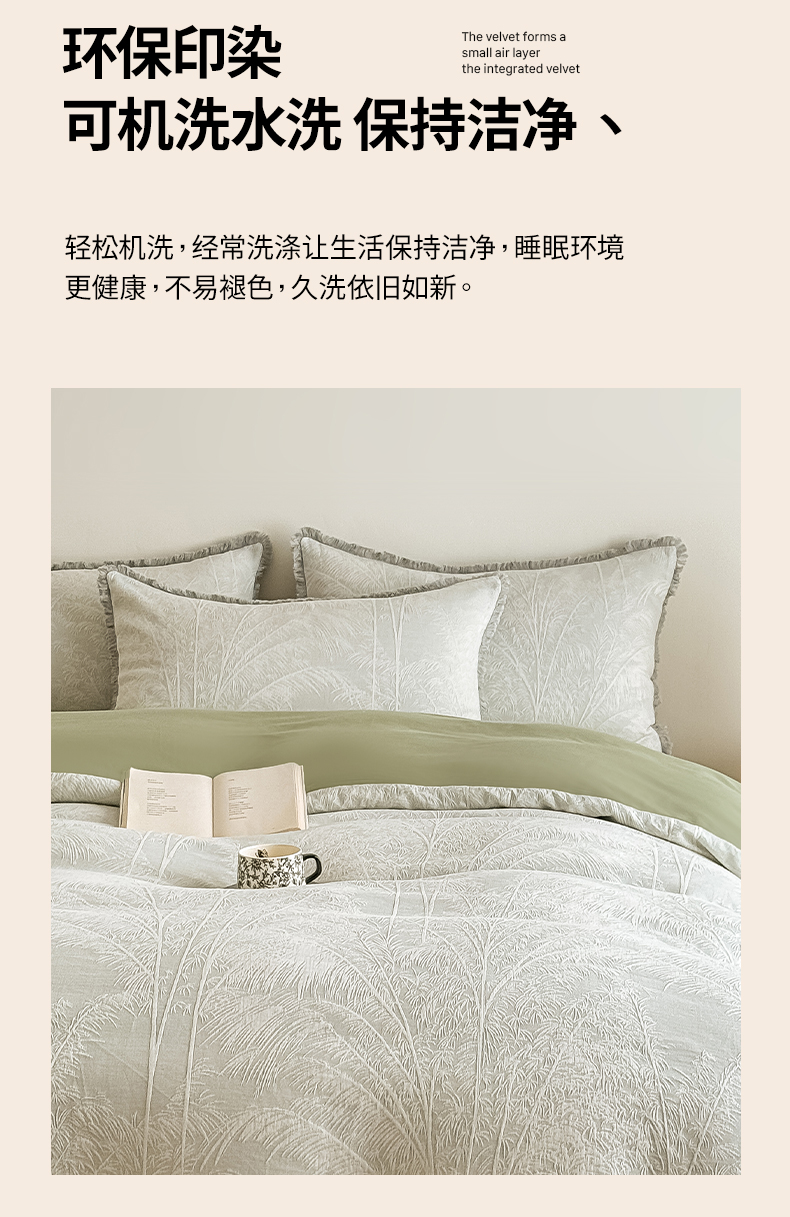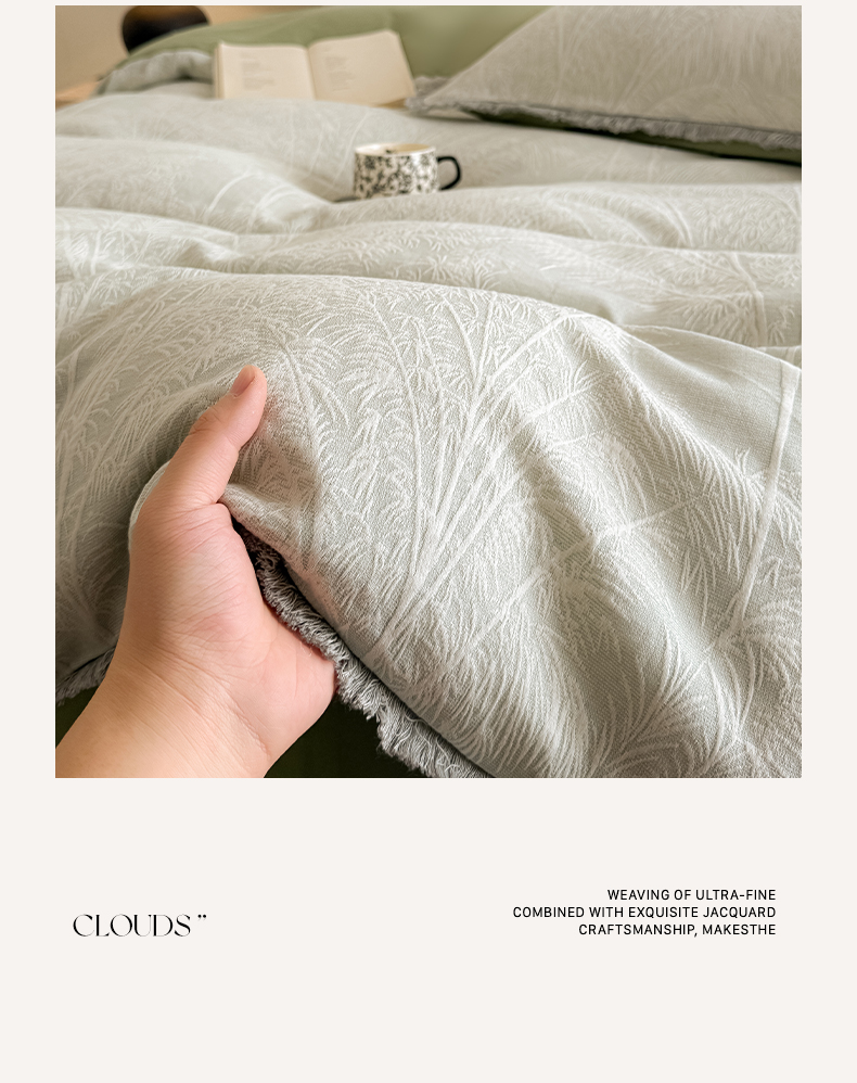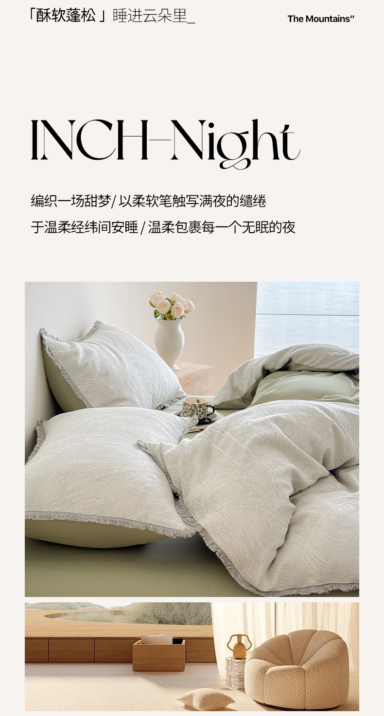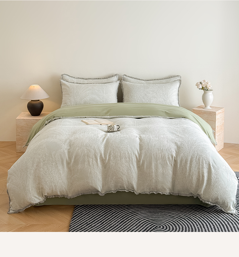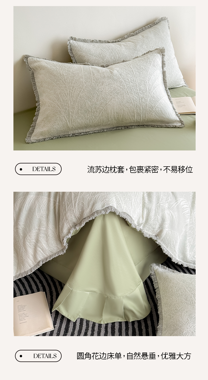 极简 2025新款全棉三层纱提花四件套 西雅图-茶绿