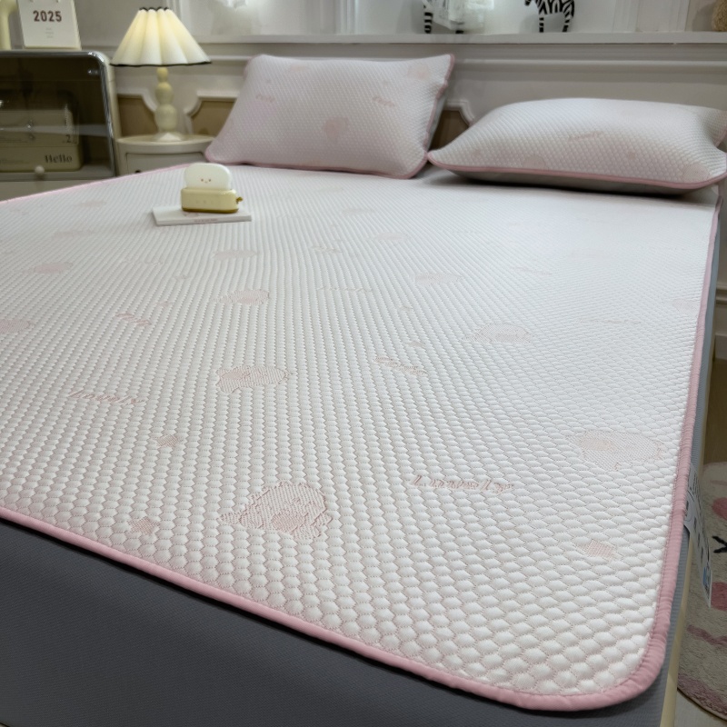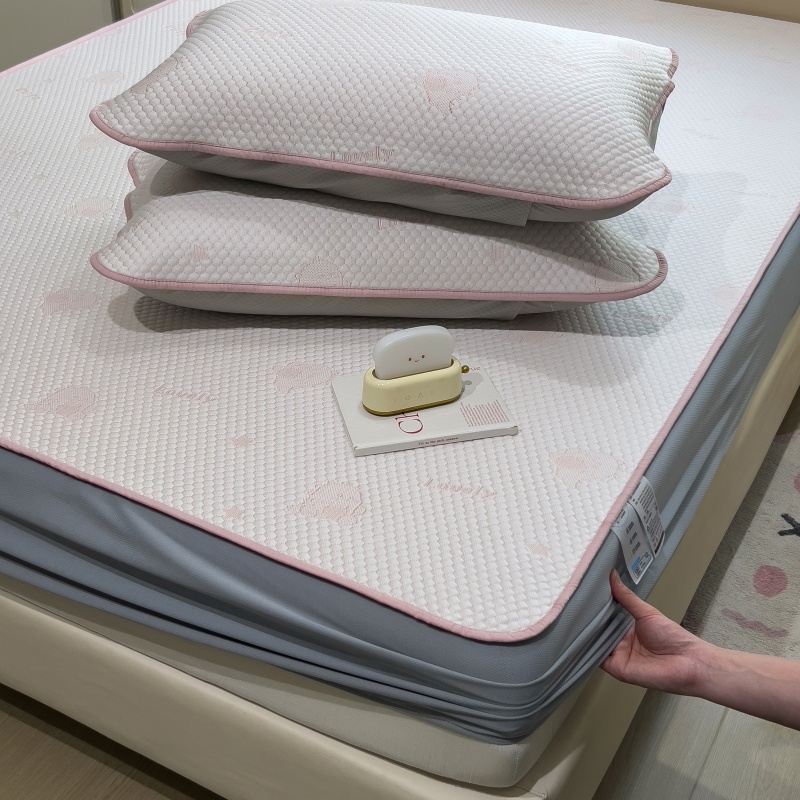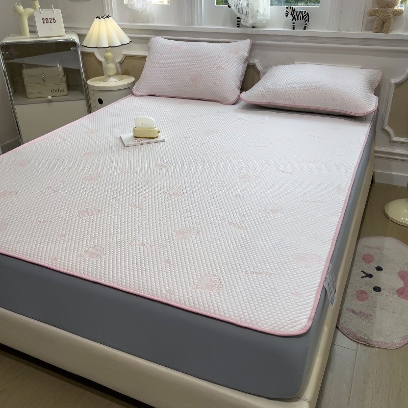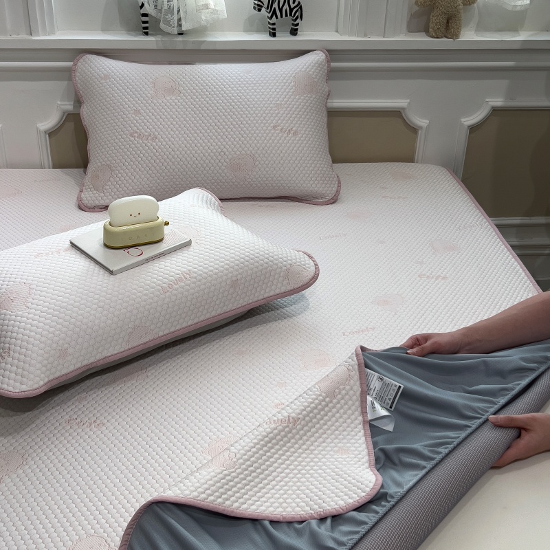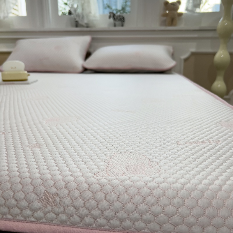 • 91家纺网 家纺一手货源 找家纺 孩子王家纺 2025新款冰丝席提花冰豆豆床单床笠-抱抱龙系列 抱抱龙-淡雅粉床笠