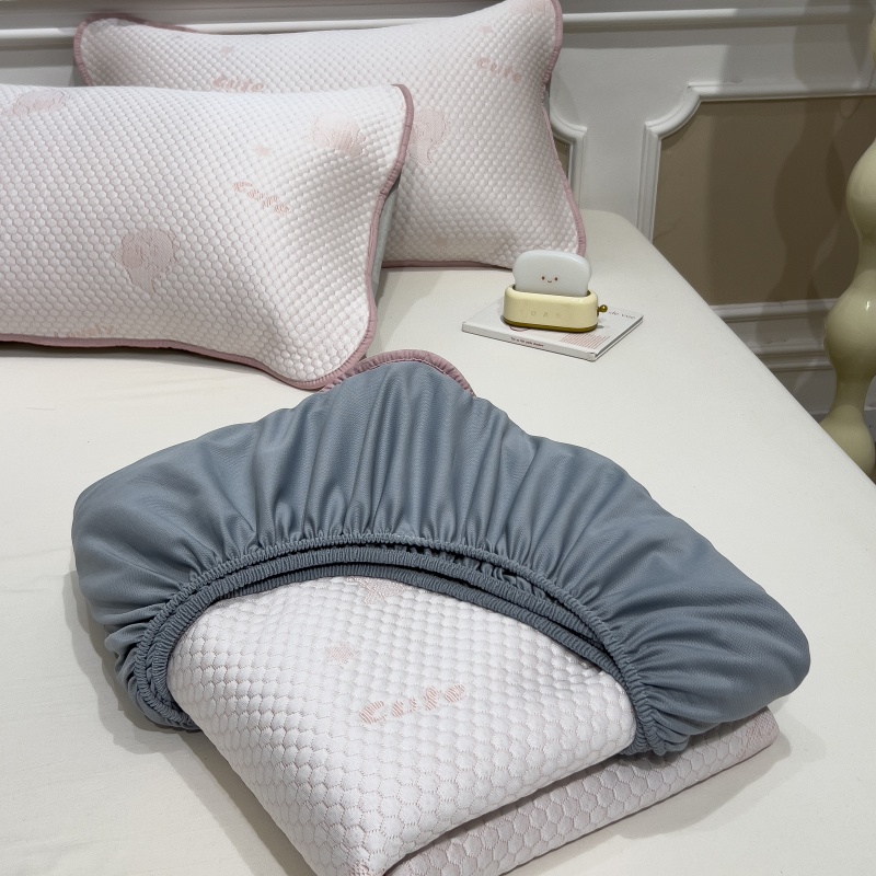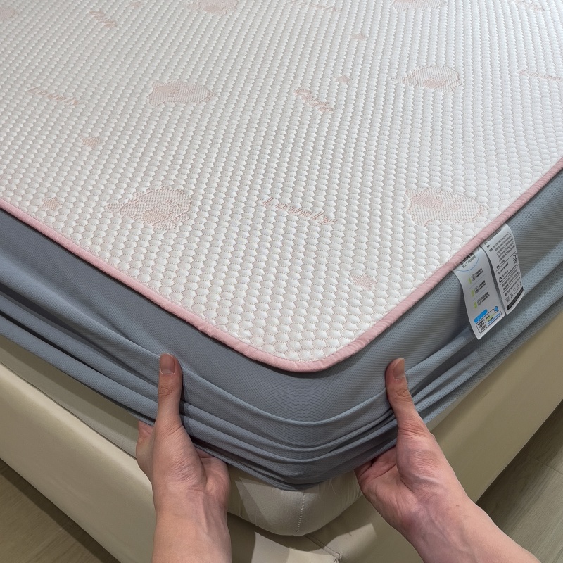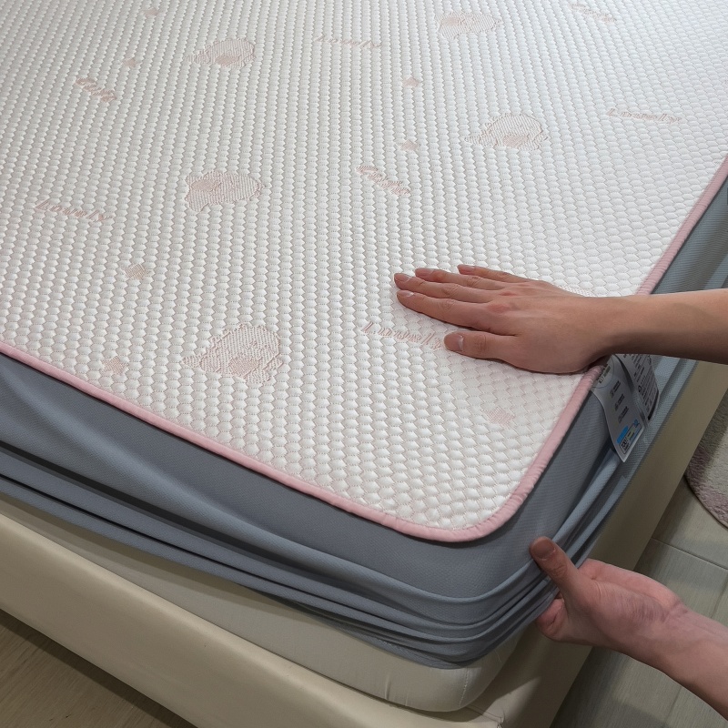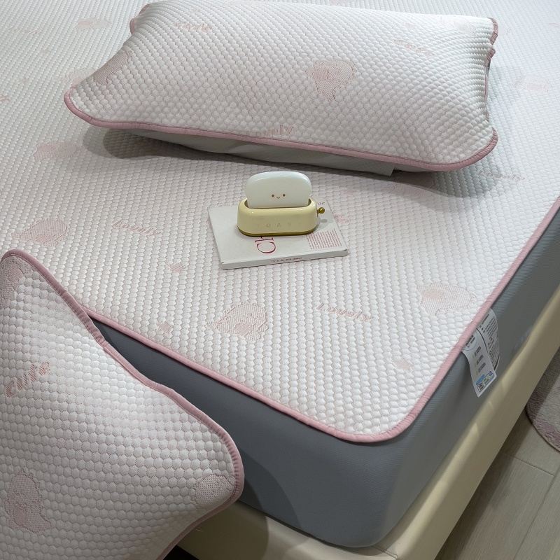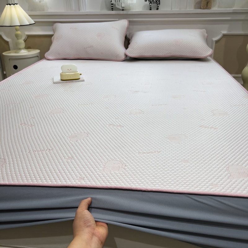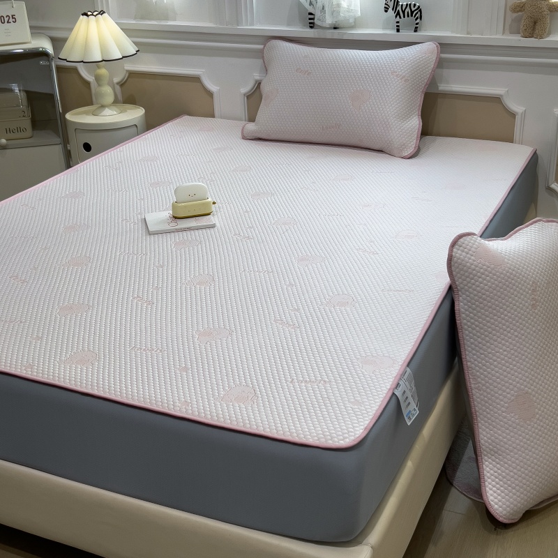 • 91家纺网 家纺一手货源 找家纺 孩子王家纺 2025新款冰丝席提花冰豆豆床单床笠-抱抱龙系列 抱抱龙-淡雅粉床笠