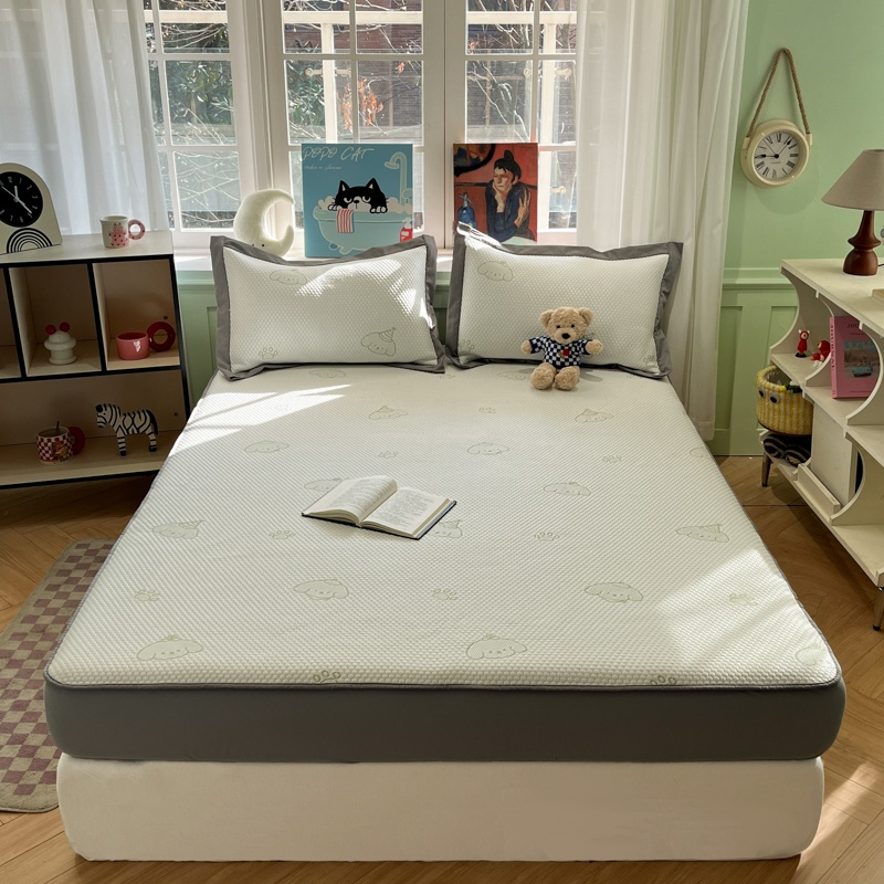 • 91家纺网 家纺一手货源 找家纺 孩子王家纺 2025新款冰丝席提花冰豆豆系列床单床笠 小狗心事床笠