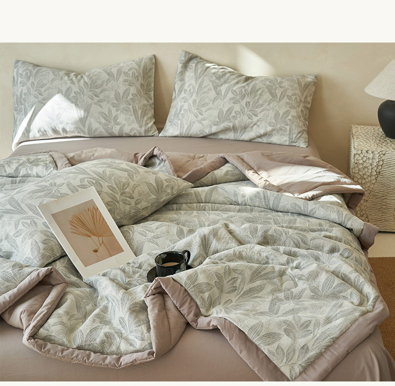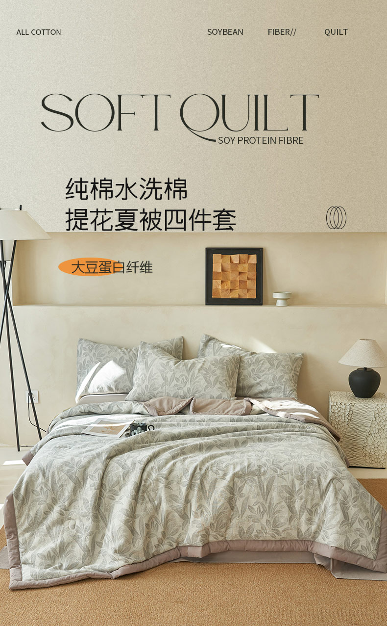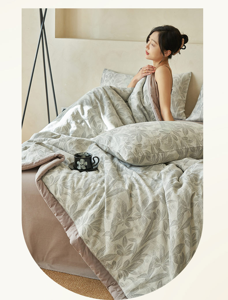 • 91家纺网 家纺一手货源 找家纺 寐绸家纺 2025新款纯棉水洗棉三层暗香提花大豆纤维夏被四件套 暗香-浅灰