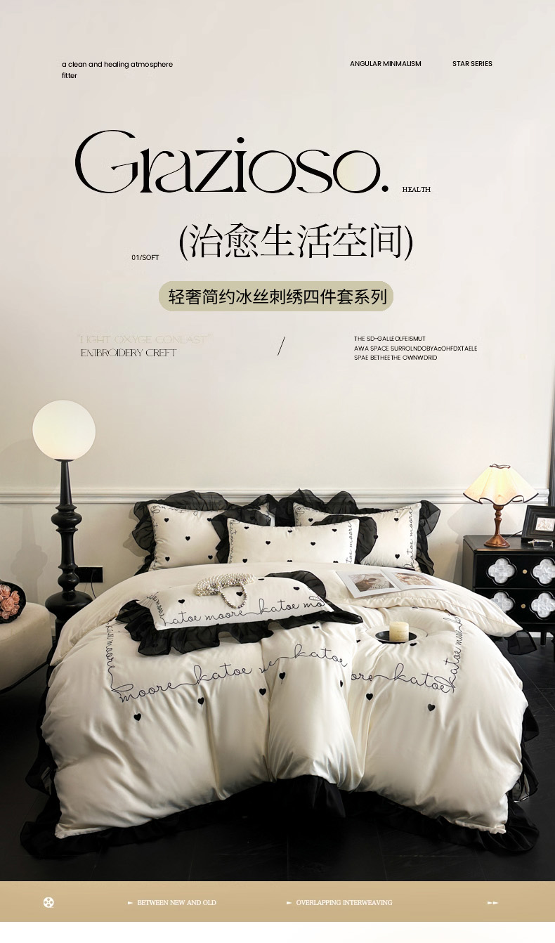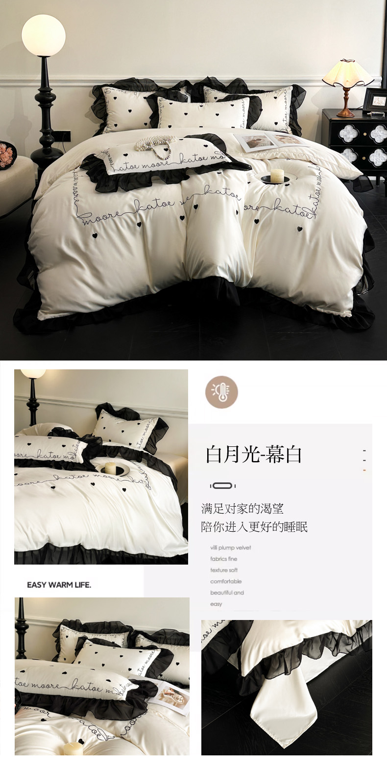 菲儿家纺 2025新款轻奢简约冰丝刺绣四件套-白月光 白月光-幕白