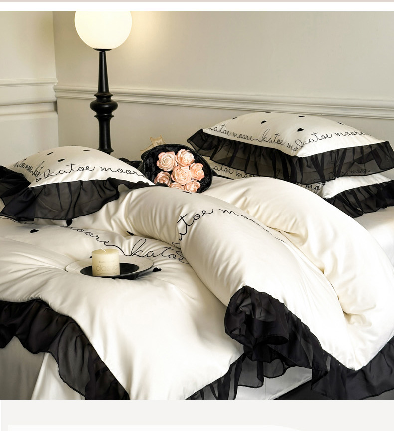 商品名称:菲儿家纺 2025新款轻奢简约冰丝刺绣四件套-白月光 白月光-幕白