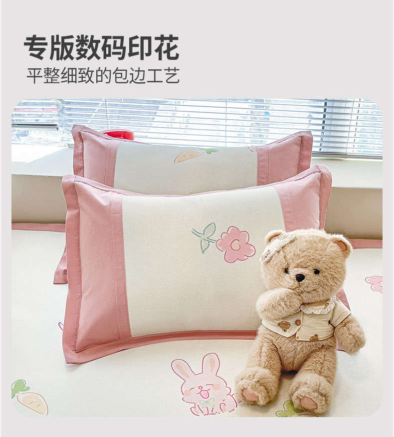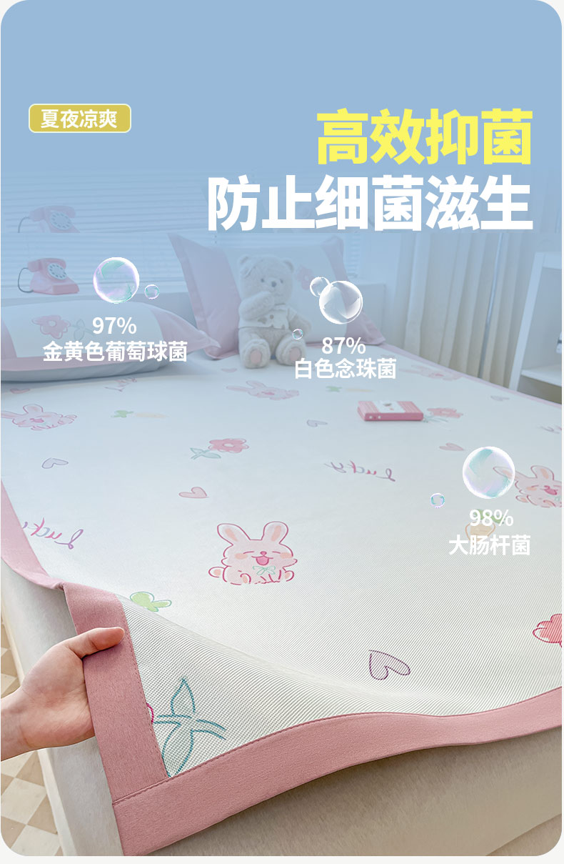 商品名称:鑫琪莱家纺 2025新款数码印花加密冰藤凉席三件套 床席款-花园小兔