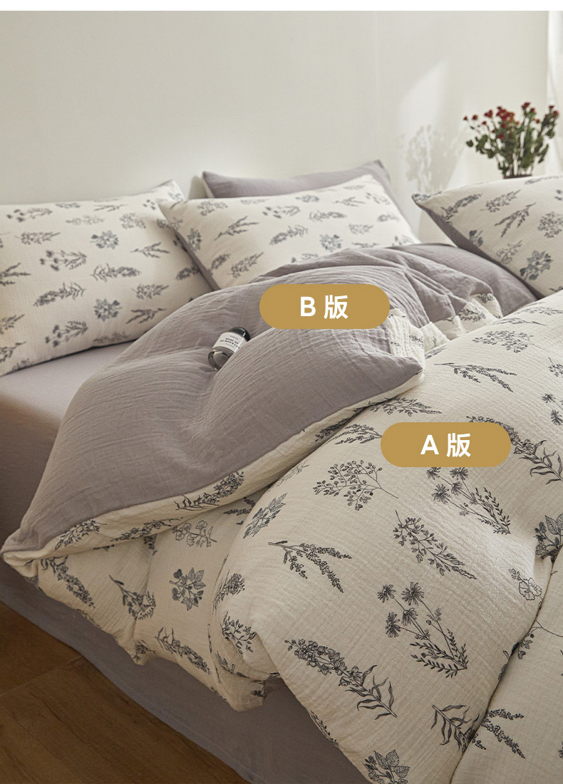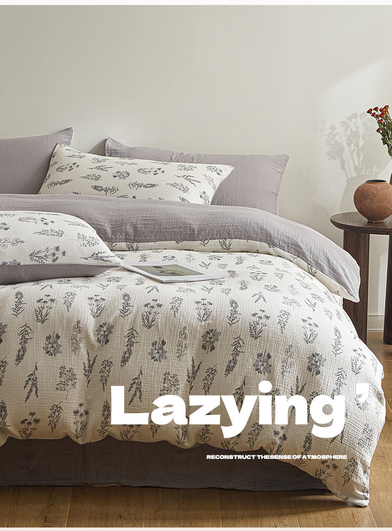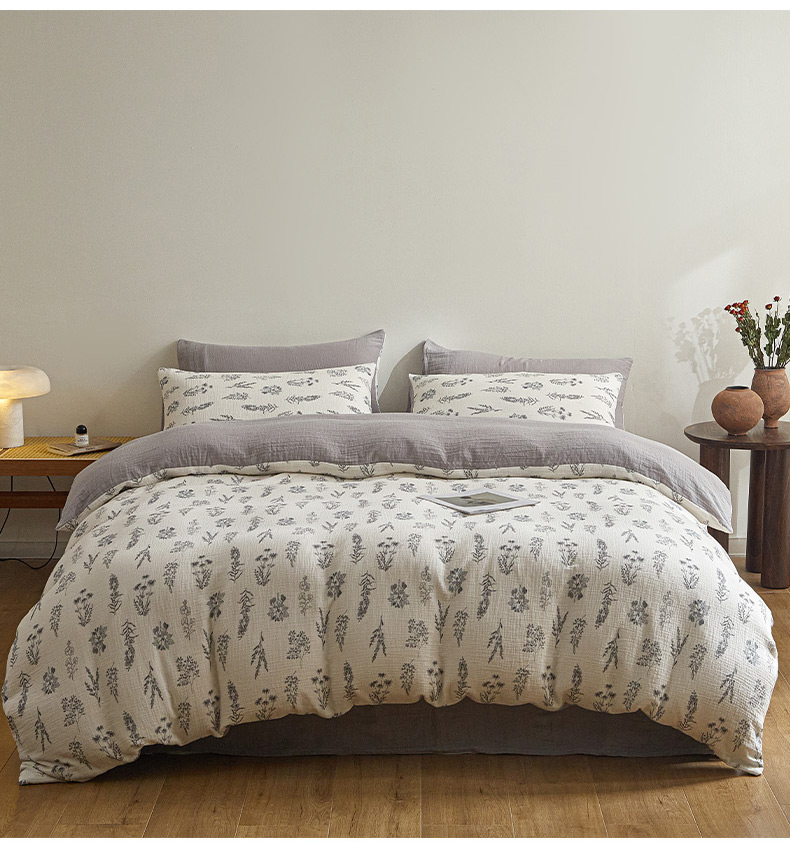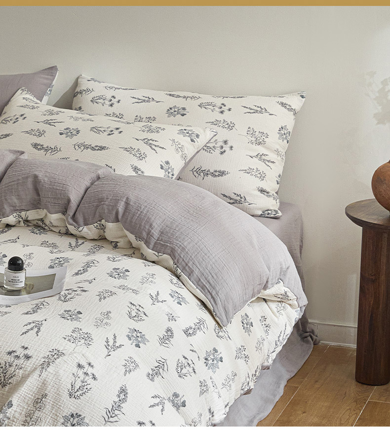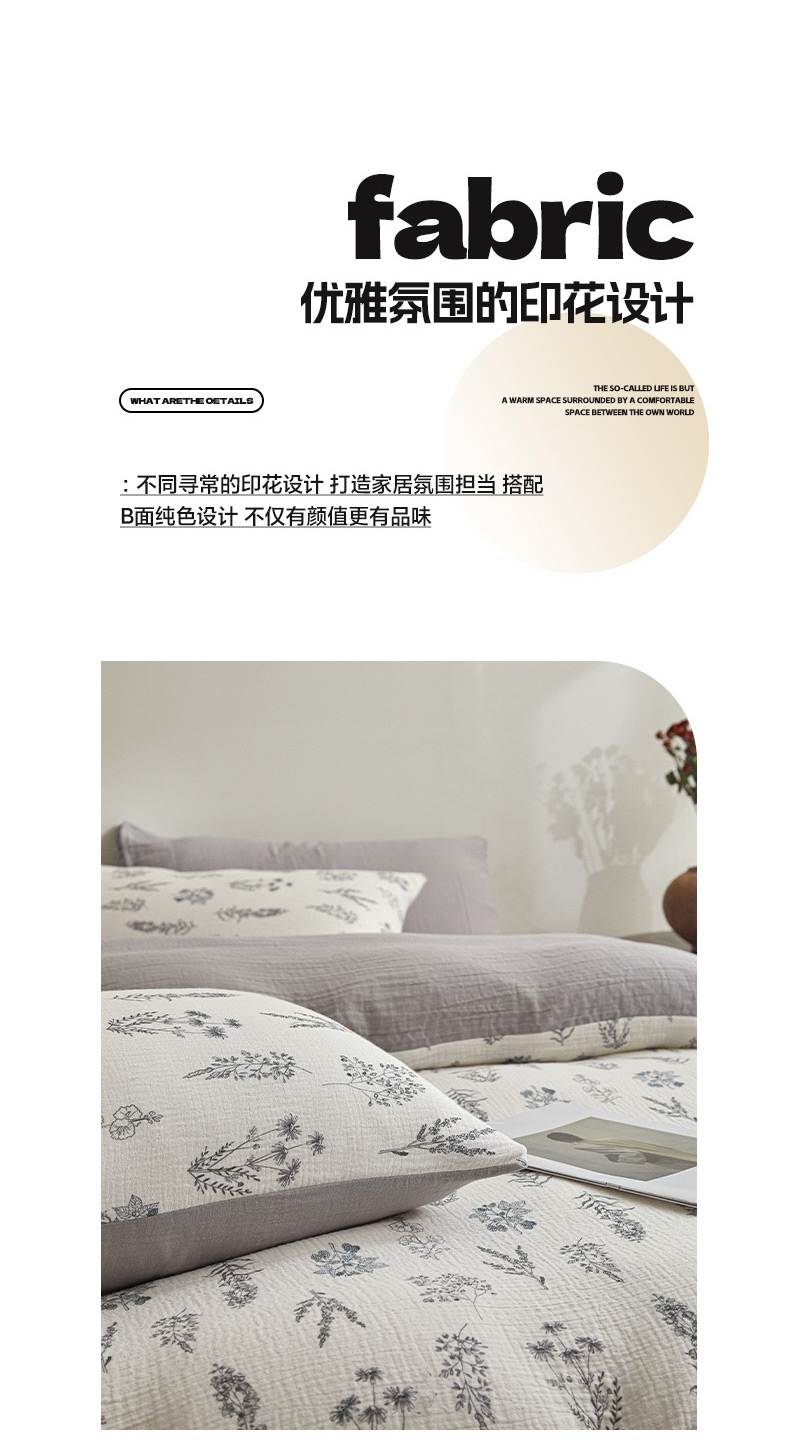 卡巴伦家纺 2025新款全棉双层皱皱纱现代中古风数码四件套 椿山集