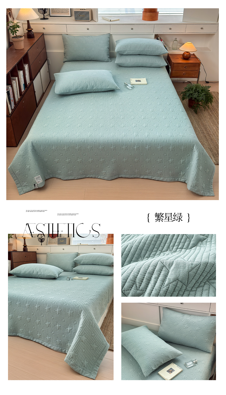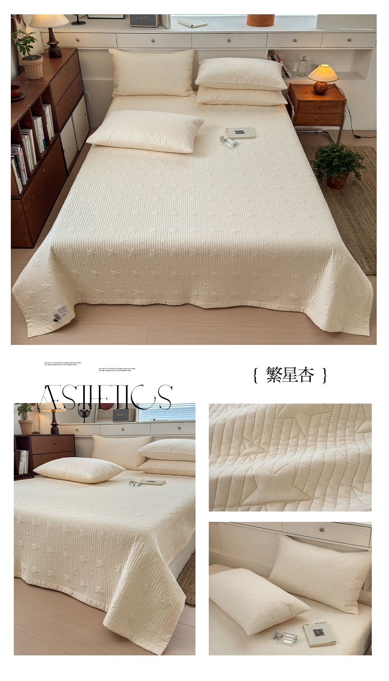 (总)漫调2025新款双面全棉砂洗水洗星星绗缝床盖三件套多功能夏被,组合图仅供参考,繁星白,繁星粉,繁星灰,繁星咖,繁星绿,繁星杏