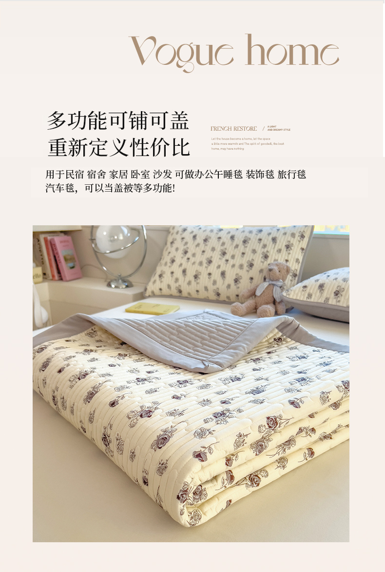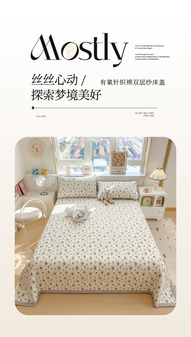 当前位置: 91家纺网 > 商品网购 > 床品套件 > 四件套 > 针织棉四件套 > 慕木家纺 2025新款A类高克重四季款针织棉双层纱多功能床盖可铺可盖 月光玫瑰