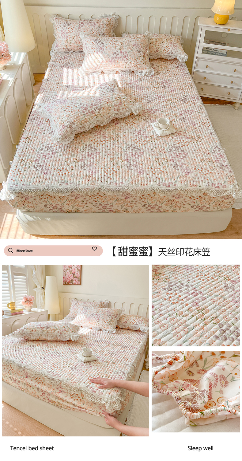 麒豆豆 2025新款天丝印花床笠 甜蜜蜜