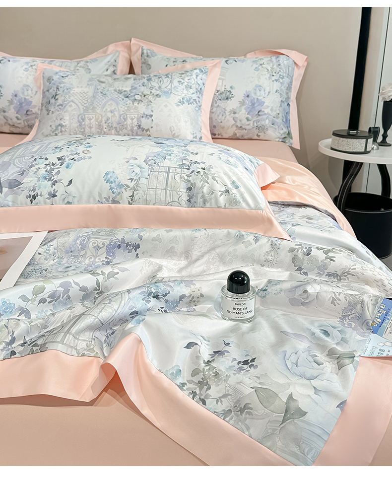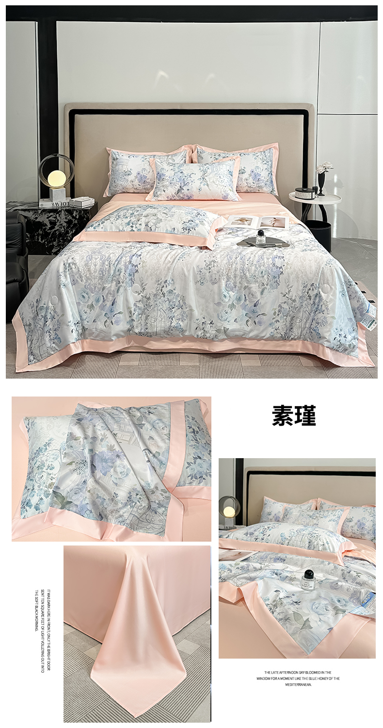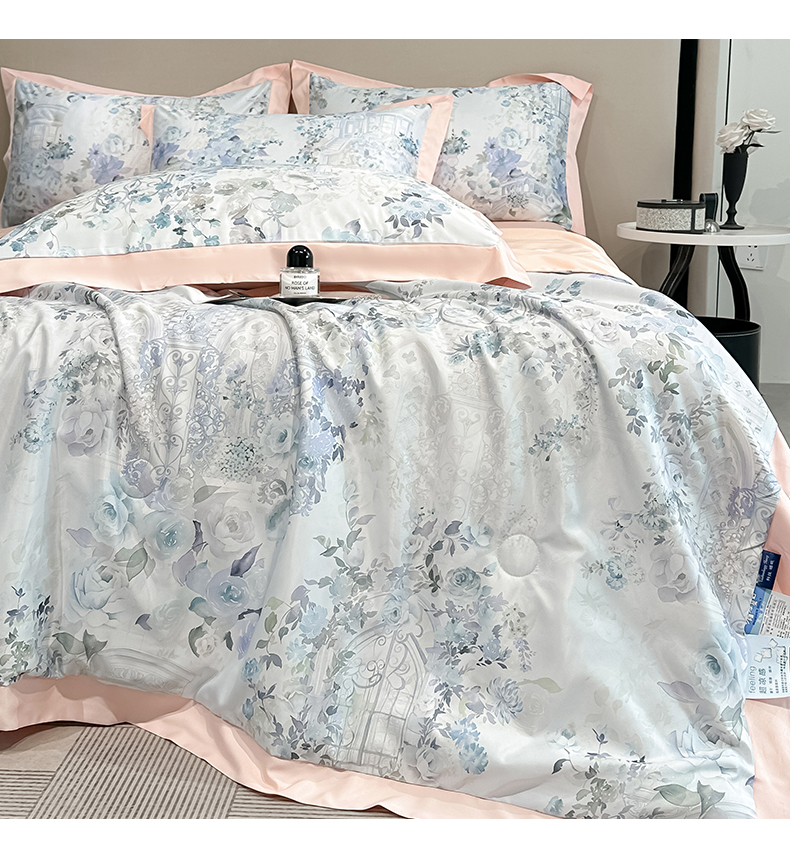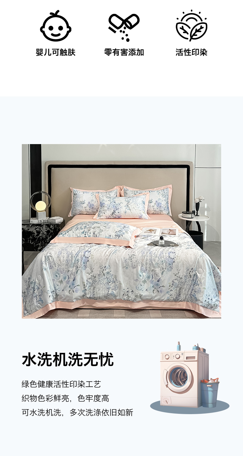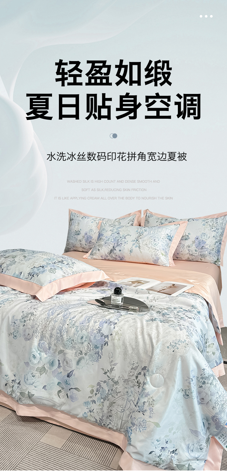 笙意家纺 2025新款水洗冰丝数码印花拼角宽边夏被 素瑾