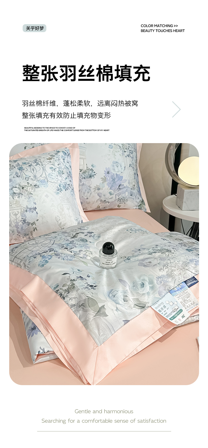 • 91家纺网 家纺一手货源 找家纺 笙意家纺 2025新款水洗冰丝数码印花拼角宽边夏被 素瑾