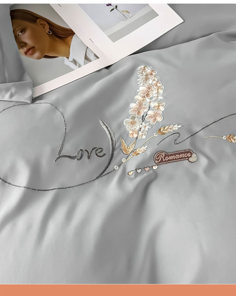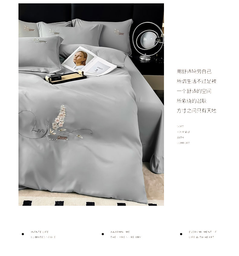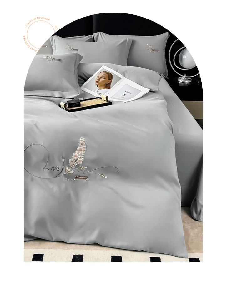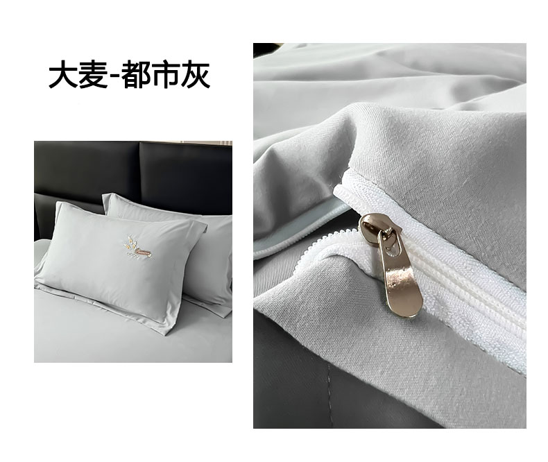 商品名称:曲之慕 2025新品四季款高端刺绣四件套简约可水洗轻奢纯色刺绣四件套 大麦都市灰