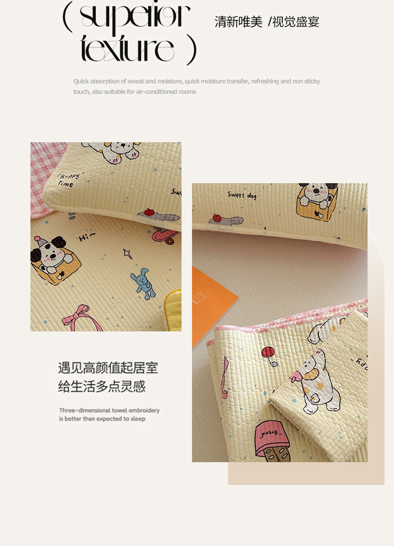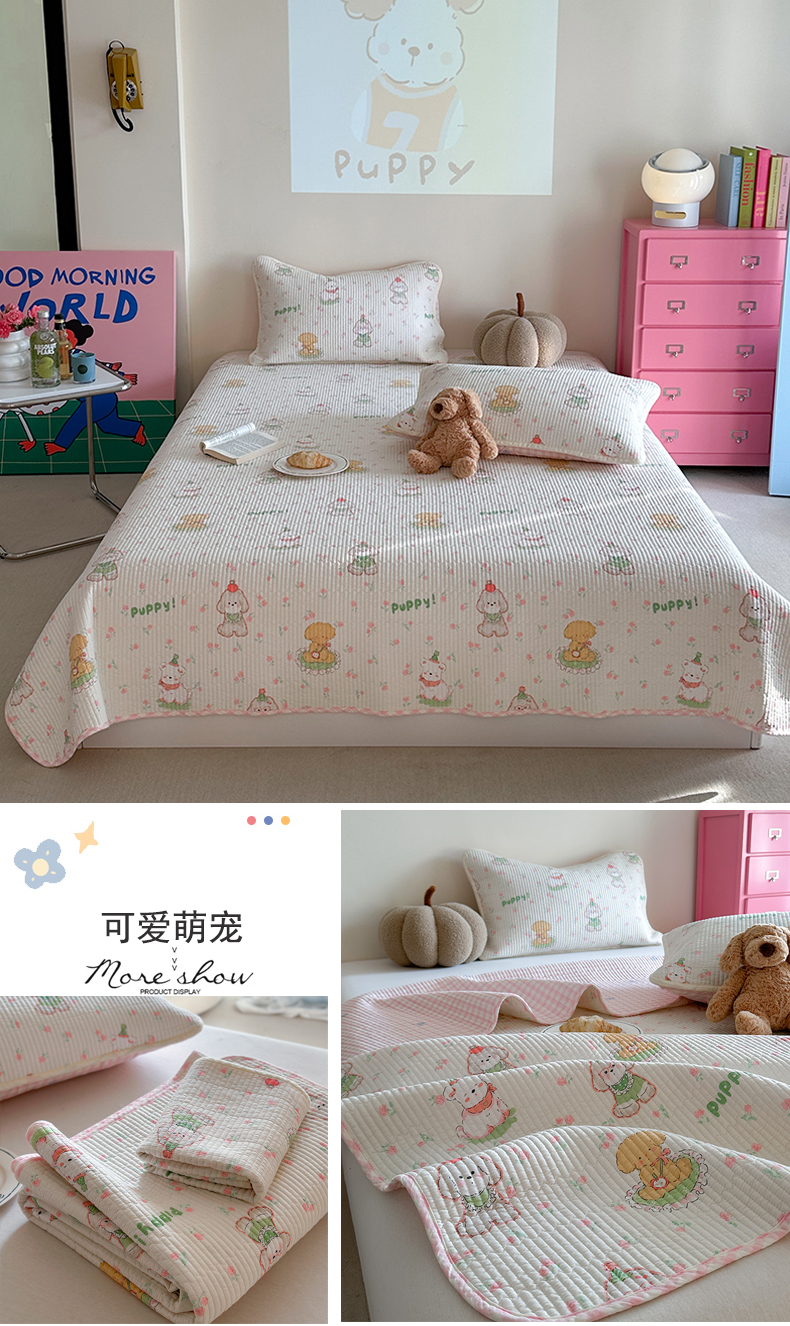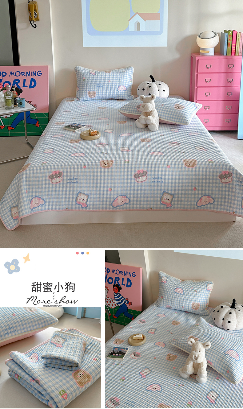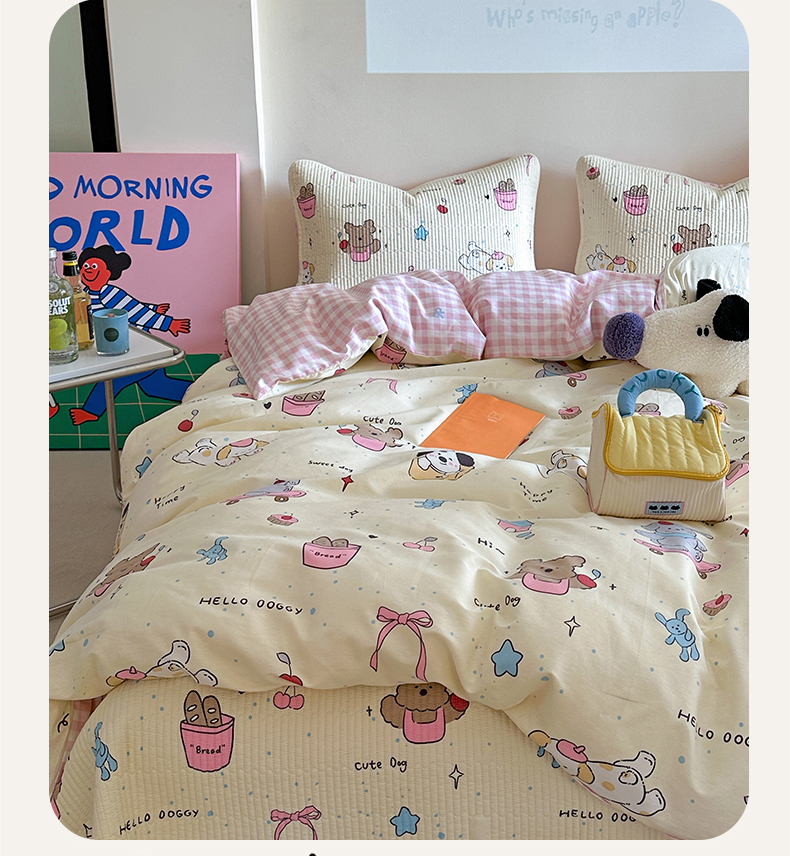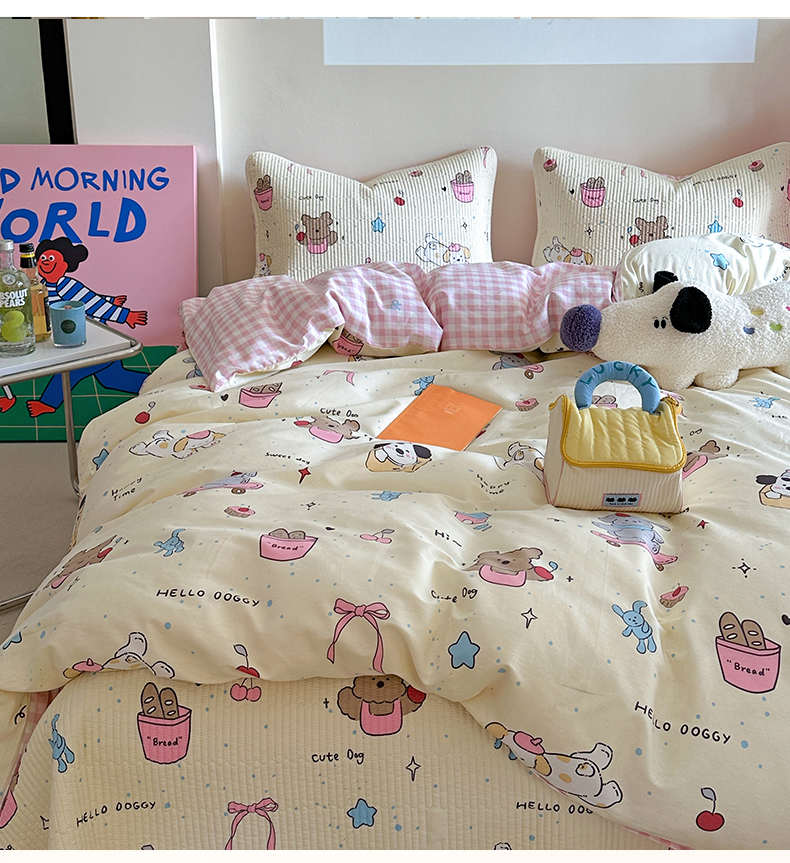 (总)麦伦家居 2026年春夏新款全棉纯棉有氧双层纱印花四件套-第二波,组合图仅供展示-不可下单,白露,花香粉,萌星粉,木马乐园,俏皮熊猫,甜梦汪汪,兔兔茉莉,心动狗狗,云锦兔-粉,云锦兔-蓝
