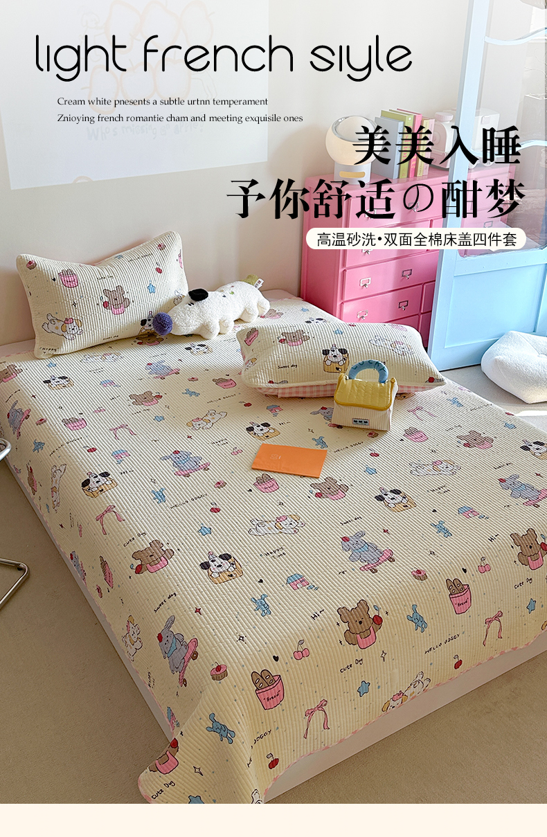 (总)麦伦家居 2026春夏新品13372全棉卡通小清新四件套,春日花语,焦糖小熊,笔记本,宾果时光,果子象,含羞草,蝴蝶结花朵粉,机灵猫,咖啡猫,快乐小星星,蕾丝小兔,漫漫花香,莓果熊,平安狗狗,时光里,线条汪汪,小玫瑰紫,紫樱桃